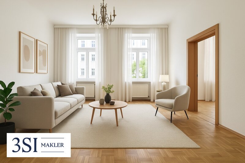 Charmante 2-Zimmer-Altbauwohnung mit ca. 57 m² Wohnfläche in ruhiger Lage von Meidling. Ideal geschnitten mit separater Küche, Wohnzimmer und Schlafzimmer.
