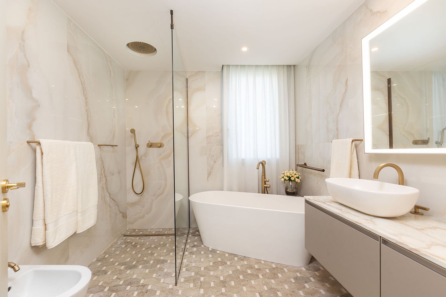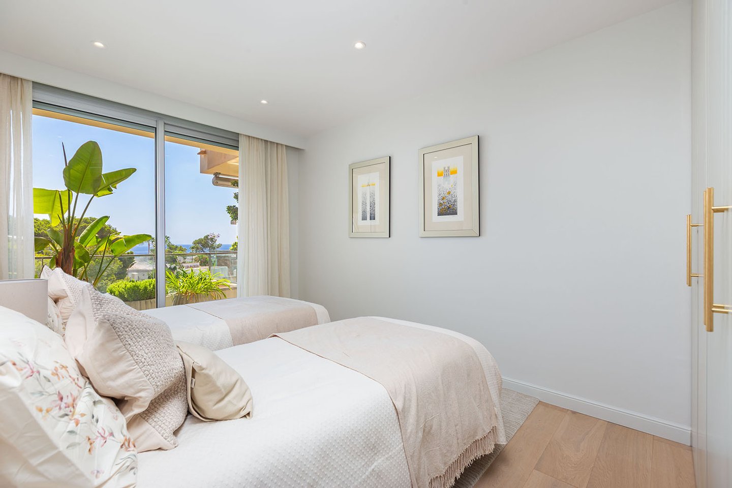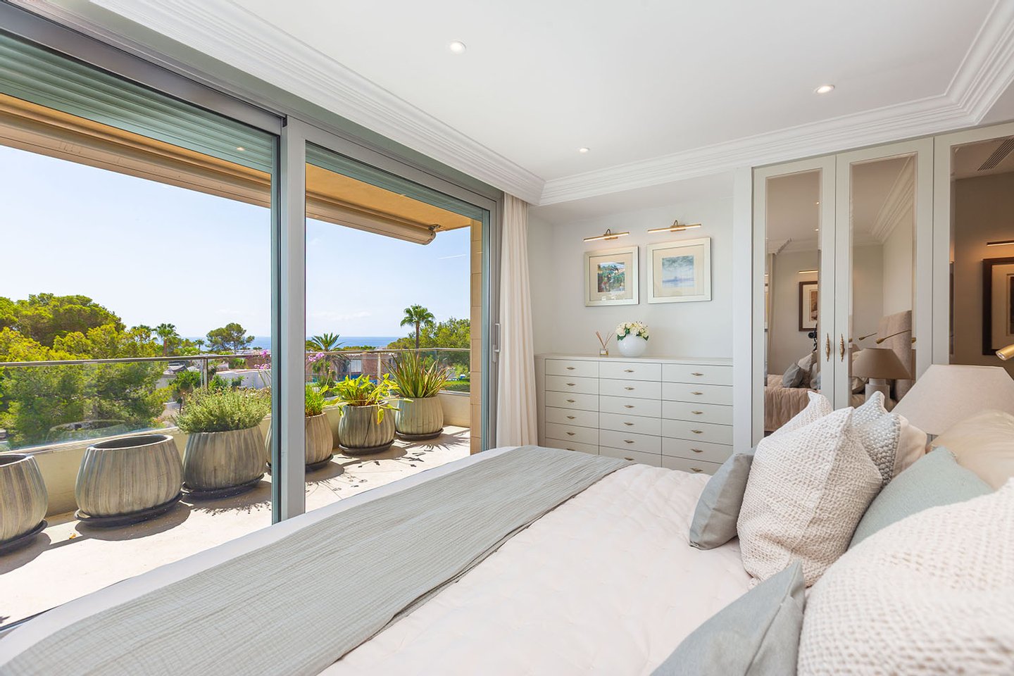 Dieses im Jahr 2024 aufwendig modernisierte Apartment vereint Ruhe, eine ausgezeichnete Lage und höchste Wohnqualität, ideal für alle, die einen stilvollen Erst- oder Zweitwohnsitz in mediterranem Umfeld suchen. In großzügigen, hellen Räumen bietet es eine hochwertige Ausstattung, und einen stilvollen, zeitlos schönen Wohncharakter. Der großzügige Wohn- und Essbereich öffnet sich zu einer 24 m² großen, überdachten Terrasse mit Blick auf die gepflegte Gartenanlage und das Meer.