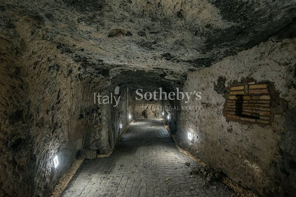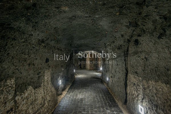 Im Erdgeschoss bietet das Gebäude zwei große Repräsentationsräume oder Ausstellungsflächen - perfekt für exklusive Veranstaltungen oder als private Kunstgalerien. Ein weiteres Highlight ist eine geheimnisvolle Grotte, die dem Anwesen zusätzlichen historischen Reiz verleiht und sich ideal als Weinkeller oder außergewöhnlicher Archivraum nutzen lässt.