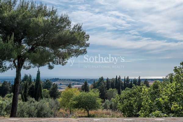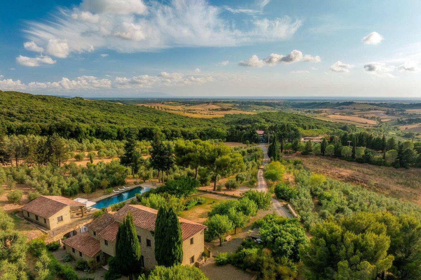 In ruhiger und panoramischer Lage bei Casale Marittimo bietet dieses herrliche Anwesen mit Meerblick eine seltene Verbindung aus toskanischer Eleganz und modernem Wohnkomfort.Umgeben von ca. drei Hektar einge
