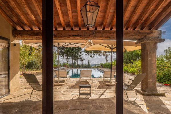 Umgeben von ca. drei Hektar eingezäuntem Land umfasst die Liegenschaft ein sorgfältig renoviertes Haupthaus, ein elegantes Poolhaus, einen Panorama-Swimmingpool sowie perfekt in die Landschaft integrierte technische Nebengebäude.