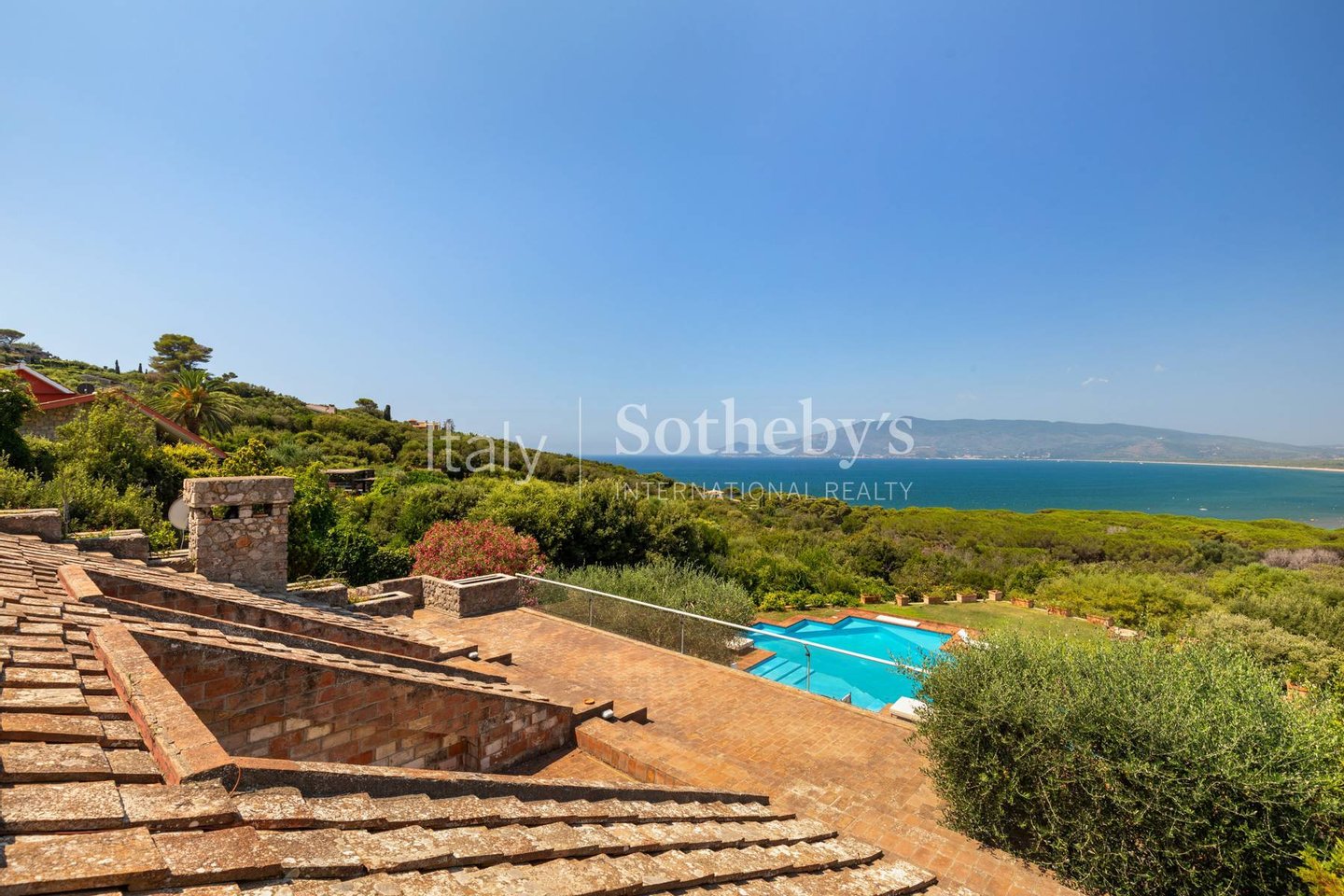 Von Licht durchflutet und vom Grünen umgeben, bietet die Immobilie einen unvergleichlichen Blick auf das Meer und den Strand von Feniglia - das ganze Jahr über zu genießen, dank großzügiger Panoramaterrassen und eines perfekt in die natürliche Umgebung integrierten Pools.