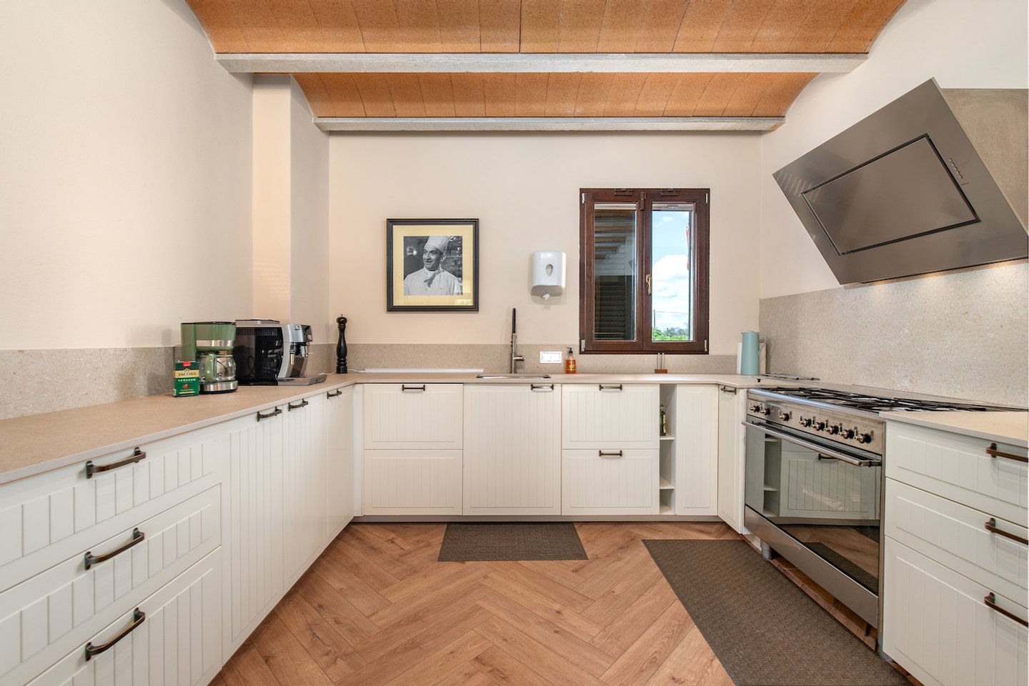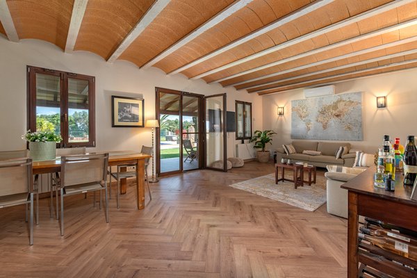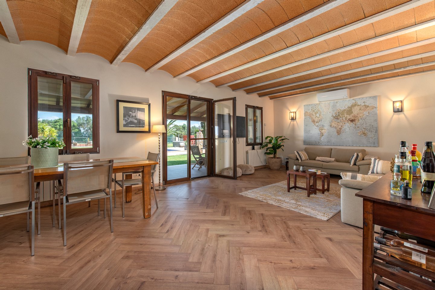 Die Finca verfügt über einen offenen Wohn- und Essbereich, der den Mittelpunkt des Hauses bildet. Direkt angrenzend befindet sich eine moderne, vollständig ausgestattete Küche. Zudem bietet die Finca vier Schlafzimmer und vier Badezimmer, die jeweils funktional und komfortabel gestaltet sind.