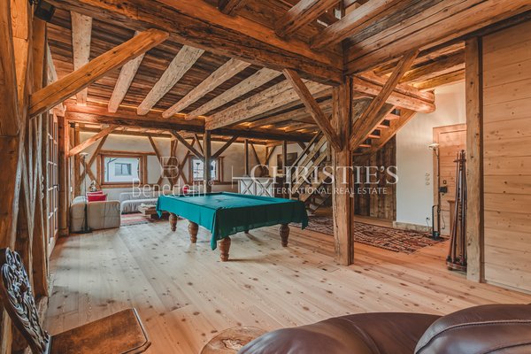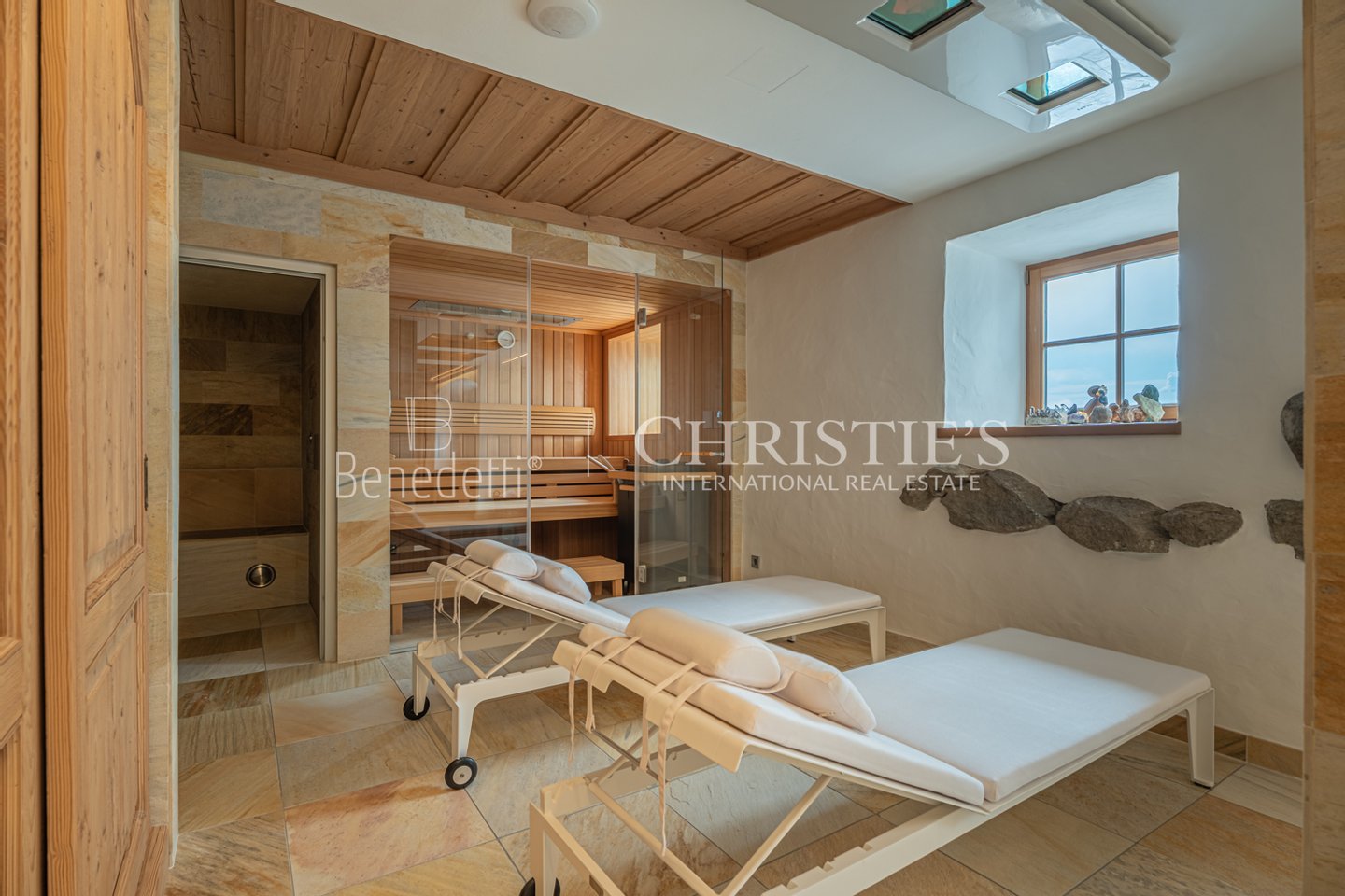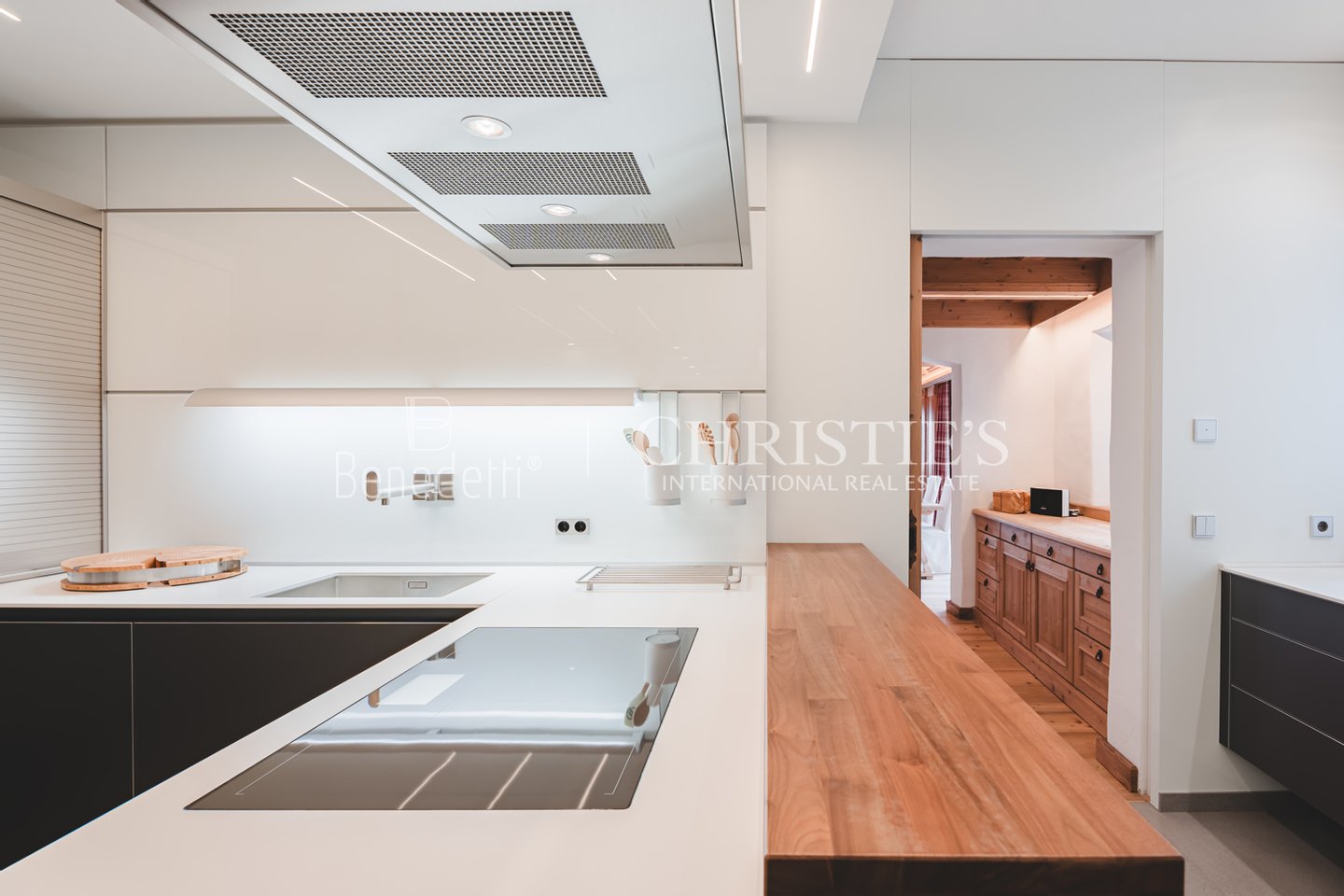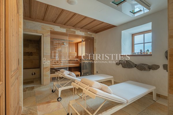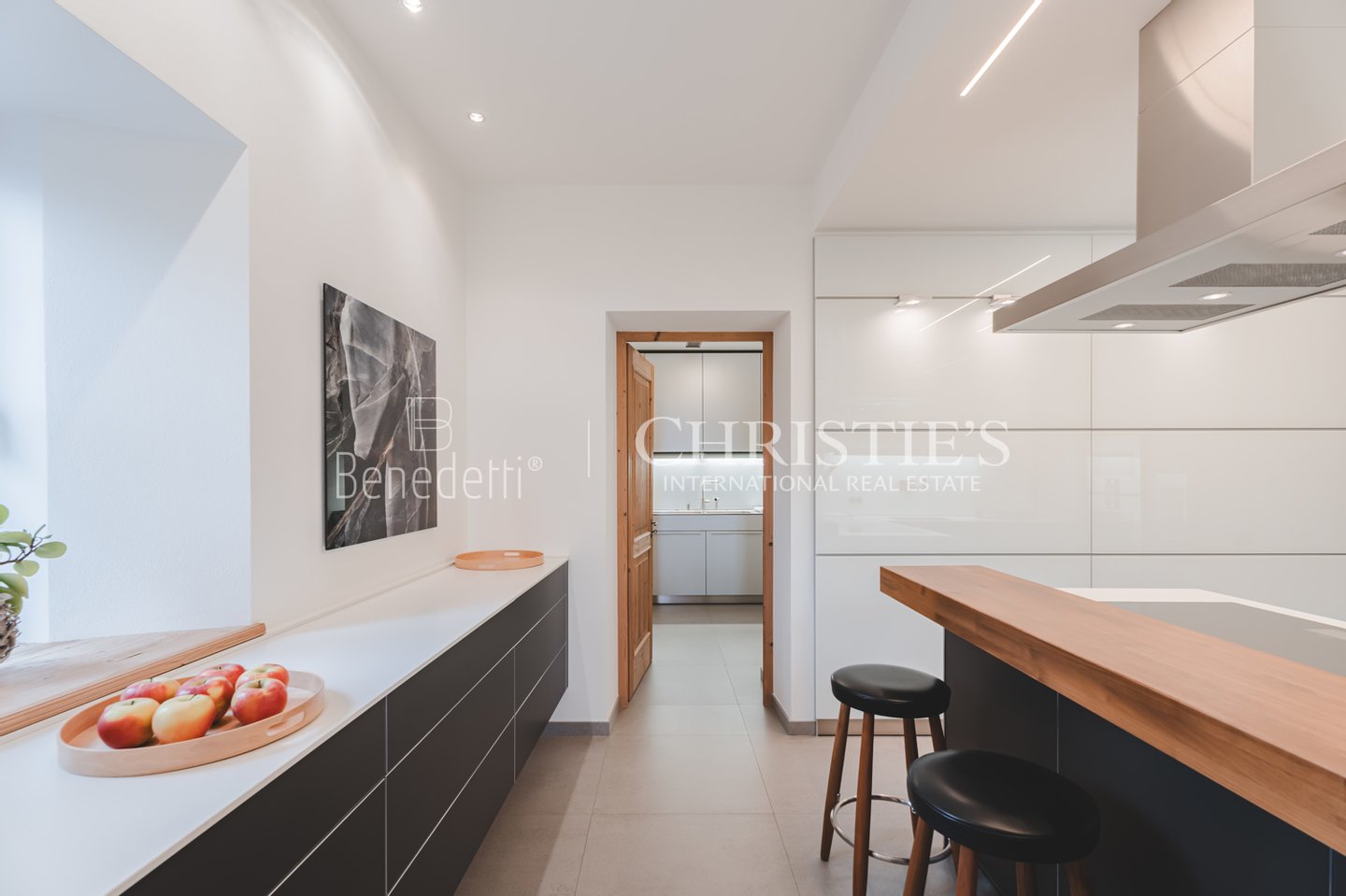 Auf vier Ebenen, davon drei oberirdisch, entfaltet sich ein Wohnkonzept von höchster Raffinesse: Der ursprüngliche Eingangsbereich wurde bewusst erhalten und zeugt von kultureller Tiefe, während im Inneren gekonnt Geschichte und Zeitgeist miteinander verschmelzen. Ein elegantes Billardzimmer, eine originale Südtiroler Bauernstube aus Altholz, eine maßgefertigte Bulthaup-Designküche sowie moderne Annehmlichkeiten wie Fußboden- und Wandheizung, ein Sicherheitssystem mit Überwachungskameras und hochwertige Holzfenster mit Doppelverglasung setzen exklusive Akzente.