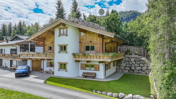 Vom Haus hat man einen wunderschönen Ausblick auf die imposanten Loferer Steinberge, das Jakobskreuz bis hin zum Wilden Kaiser.