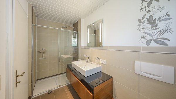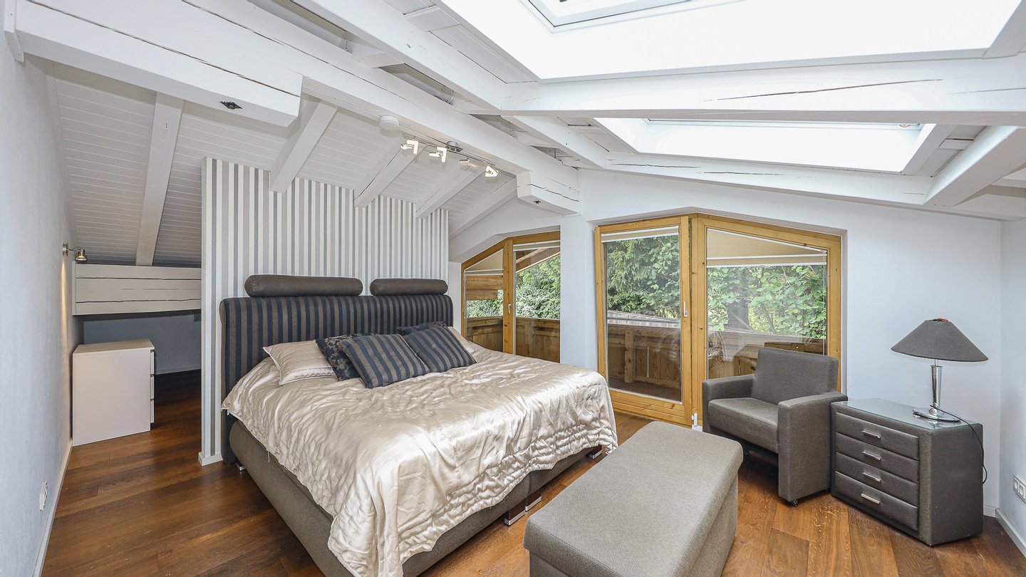 Im Dachgeschoss befindet sich der große Masterbedroom mit eigener Ankleide, das Masterbad mit Dusche und Eckbadewanne sowie ein Dachraum, welcher derzeit als Schlafzimmer genutzt wird.