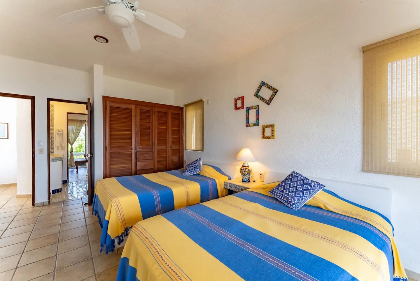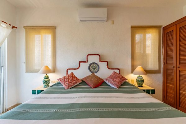 Diese Luxusvilla ist wirklich einzigartig, da sie von Enrique Alcaraz, dem bekannten mexikanischen Architekten und bildenden Künstler, entworfen, entworfen und gebaut wurde. Casa Dos Palmas ist eine außergewöhnliche Verschmelzung der Architektur im Maya-Stil mit einer dreistöckigen, handgefertigten Maya-Cupula (Backsteinkuppel) und originalen Talavera-Fliesen im authentischen Hacienda-Stil. Die Möbel sind handgefertigt, und es gibt Möbelschränke aus Mahagoni. Original Art & Murals sind ein weiteres Highlight: Casa Dos Palmas wird seine beiden originalen Alcaraz-Wandmalereien behalten, die für dieses Haus von Enrique Alcaraz in Auftrag gegeben wurden. Keine andere Ocean Villa in der Gegend kann sich der Kunst, der Kuppel oder der Positionierung rühmen: über 180-Grad-Blick auf das Meer und den Sonnenaufgang und den 180-Grad-Blick auf den Dschungel am Pool. Es gibt auch einen vom Eigentümer verschlossenen Kleiderschrank, der als Speisekammer und Spirituosenschrank genutzt werden kann. Sowie Zimmersafes, die für die Sicherheit Ihrer Waren sorgen.