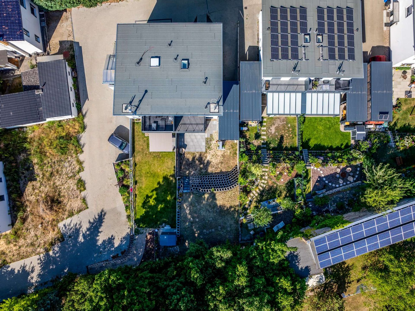 Der Bau erfolgte in Massivbauweise nach KfW 55 Energiestandard, was für eine effiziente und nachhaltige Wärmeversorgung sorgt. Das Haus wird mit einer umweltfreundlichen Wärmepumpe beheizt, die Fußbodenheizung sorgt für angenehme Wärme. Zudem können durch die leistungsstarke Photovoltaik-Anlage verschwindend geringe Energieverbräuche für Strom, Warmwasser und Heizung erzielt werden. Angrenzend finden Sie einen eigenen Carport sowie einen Abstellraum für Fahrräder und Gartengeräte. Der offene Wohn- und Essbereich mit ca. 31 m² schafft ein großzügiges und einladendes Raumgefühl – perfekt für gesellige Abende und familiäre Momente. Hochwertige Materialien und offene Strukturen sorgen für eine angenehme Atmosphäre der Entspannung. Hier können Sie Ihren persönlichen Wohnstil verwirklichen und Ihren Alltag stilvoll gestalten. Erweitert wird der Wohnbereich durch die gepflasterte Terrasse und den Garten, welche Heimgärtnerherzen höher schlagen lassen. Der Hauswirtschaftsraum ermöglicht neben Anschlüssen für Waschmaschine und Trockner zusätzliche Staufläche. Zudem ist auf der Ebene auch ein Gäste-WC vorhanden.
