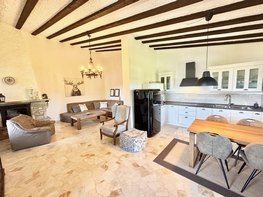 Das Haus bietet eine Wohnnutzfläche von ca. 140 qm und teilt sich wie folgt auf: EG: großes und helles Wohnzimmer mit Kamin und offener Küche, 1 Doppelschlafzimmer mit Bad en-suite, Kinderzimmer, WC, Abstellraum. Souterrain: großes Gästezimmer,