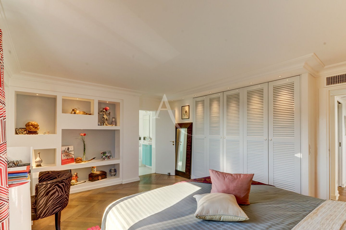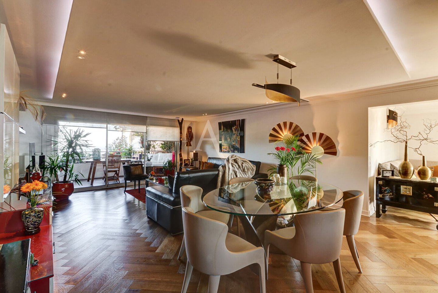 Wir sind stolz darauf, Ihnen diese einzigartige Immobilie präsentieren zu können! Kreuzende Wohnung mit zwei Terrassen mit Holzböden, herrlichem Blick auf die Bucht von Cannes und die Lérins-Inseln für beide auf dem Esterel, Privileg der Sonne, die sich von Sonnenaufgang bis Sonnenuntergang dreht, Magie der Farben!! Komplett neu angeordnet, Holzparkett über die gesamte Oberfläche der Räume, hochwertige Fischgräten, als Loft gestaltet, mit seiner geschmackvollen Dekoration und seiner Zen-Atmosphäre, die die Aufteilung der Wohnzimmer begünstigt, fühlt man sich sofort an einem besonderen Ort: ein einladender Eingang, der sich zu einem großen hellen Wohnzimmer öffnet, das Ost/W durchquert, Eine voll ausgestattete Küche, um die herum alle Räume angeordnet sind: eine geräumige Master-Suite mit Ankleidezimmer und Spa (Whirlpool, Lichttherapie, Sauna mit angenehmem Design und Beleuchtung), ein zweites Schlafzimmer mit einem großen hochwertigen und ausgestatteten Ankleidezimmer, ein Duschbad und angrenzende / separate Toiletten, eine Waschküche. Verkauft mit einem großen möblierten und gefliesten Schuppen, können Sie dort alle Arten von Habseligkeiten lagern, da es gesund und oben ist. Auch mit zwei geschlossenen Garagen verkauft. Zu sehen, gut atypisch ruhig, in absoluter Ruhe mit einem gewissen Charme und einer privilegierten Lage.