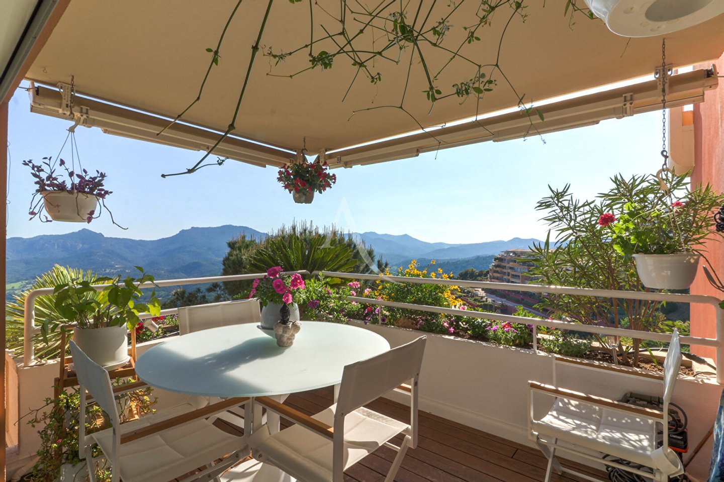 Wir sind stolz darauf, Ihnen diese einzigartige Immobilie präsentieren zu können! Kreuzende Wohnung mit zwei Terrassen mit Holzböden, herrlichem Blick auf die Bucht von Cannes und die Lérins-Inseln für beide auf dem Esterel, Privileg der Sonne, die