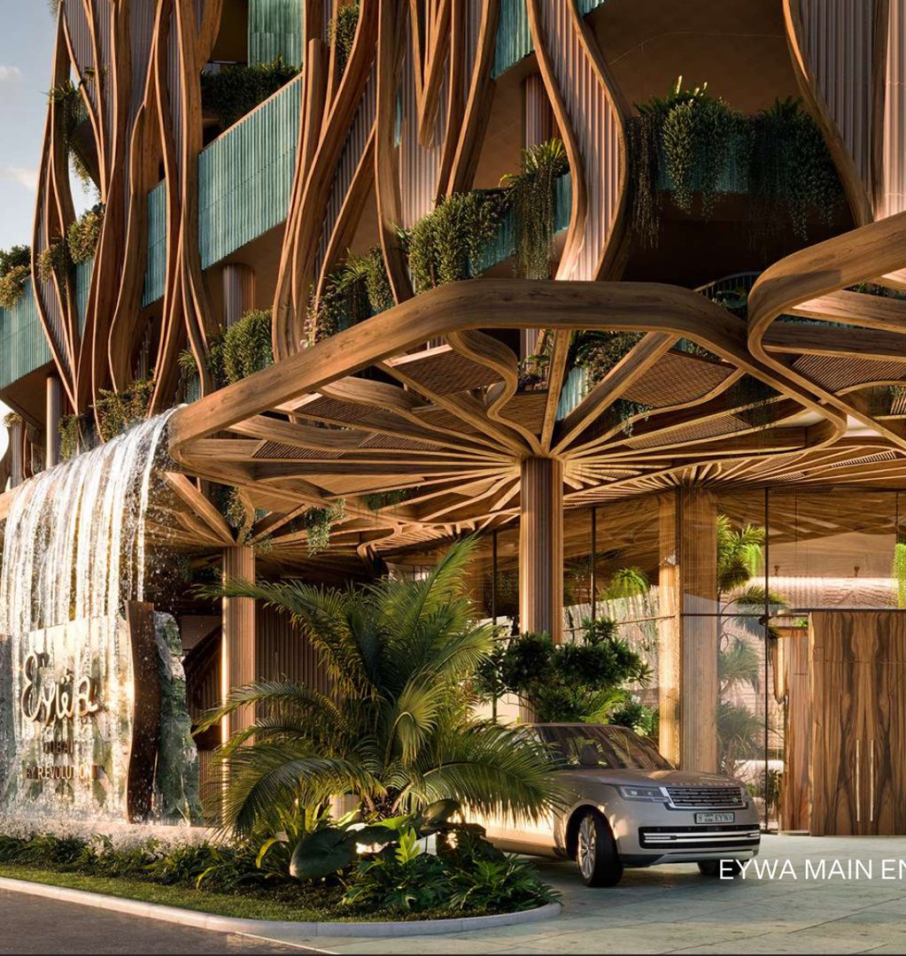 Charakteristisches organisches Design , inspiriert vom Baum des Lebens, mit einer lebendigen grünen FassadeGeräumige Residenzen – Premium-Oberflächen, raumhohe Fenster, von der Natur inspiriertes Interieur