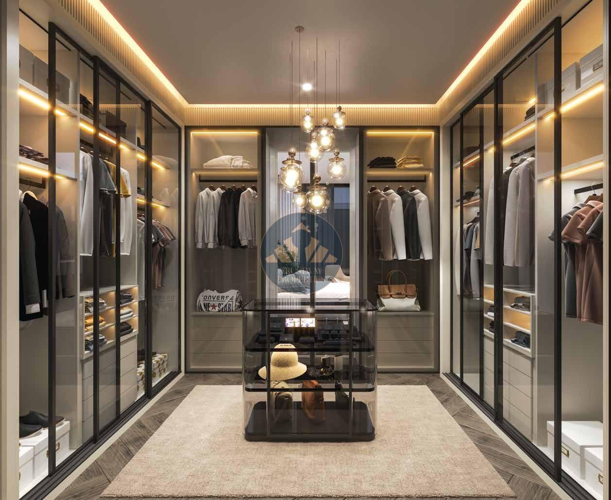 - U-förmige, maßgeschneiderte Kleiderschränke, die auf Luxus und Funktion ausgelegt sind