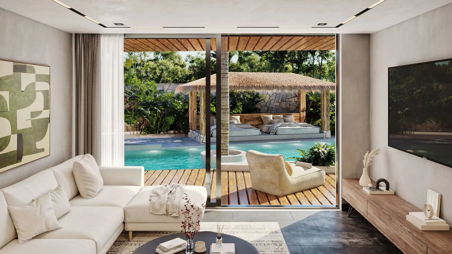 Willkommen in einem modernen Rückzugsort in Tulum, der geräumige Eigentumswohnungen mit einem, zwei und drei Schlafzimmern bietet. Jede Residenz ist sorgfältig für komfortables Wohnen konzipiert und verbindet moderne Oberflächen mit der natürlichen Umgebung. Diese Häuser bieten eine perfekte Balance zwischen Luxus und Funktionalität und sorgen für einen außergewöhnlichen Lebensstil.