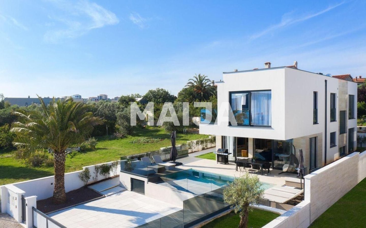 Erleben Sie den ultimativen Luxus in dieser atemberaubenden neuen Villa, die perfekt in der 1. Reihe zum Meer in Medulin gelegen ist. Mit 340 m² Wohnfläche auf drei Ebenen bietet diese Villa einen atemberaubenden Meerblick, eine geräumige Terrasse und einen beheizten Infinity-Pool. Genießen Sie den Panoramablick vom offenen Wohnzimmer, der Küche und dem Essbereich und entspannen Sie stilvoll mit hochwertigen Möbeln und erstklassigen Annehmlichkeiten. Drei Schlafzimmer, jedes mit eigenem Bad, bieten ruhige Rückzugsorte, während ein Wellnessbereich mit Whirlpool und Sauna sowie ein Spielzimmer für Kinder für alle Altersgruppen geeignet sind. Mit ihrem Energieausweis der Klasse A und der Luftwärmepumpe ist diese Villa nicht nur schön, sondern auch umweltfreundlich. Im Herzen von Medulin gelegen, mit allen wichtigen Annehmlichkeiten zu Fuß erreichbar, bietet diese Villa die perfekte Mischung aus Luxus und Bequemlichkeit.
