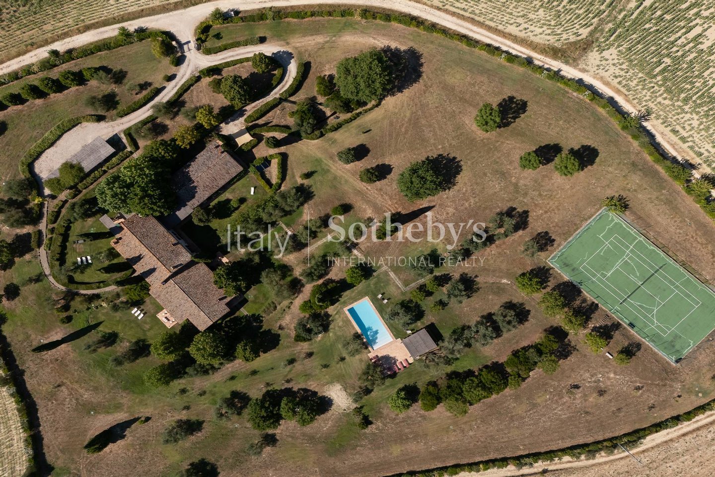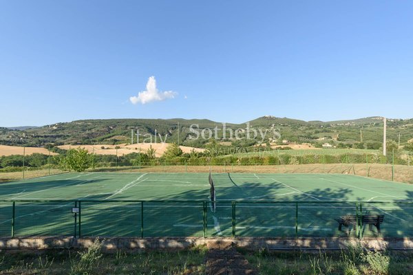 Der Panorama-Pool befindet sich an der spektakulärsten Stelle des Anwesens, umgeben von Olivenbäumen und ertragreichen Obstbäumen, während ein Tennisplatz in Turniergröße das Angebot um eine sportliche Note ergänzt. Die moderne Haustechnik umfasst eine getrennte Heizungsanlage für die beiden Gebäude, einen artesischen Brunnen mit Wasserenthärter, einen Sammelzisterne, Solarpaneele, automatische Bewässerung sowie eine schnelle Internetverbindung.