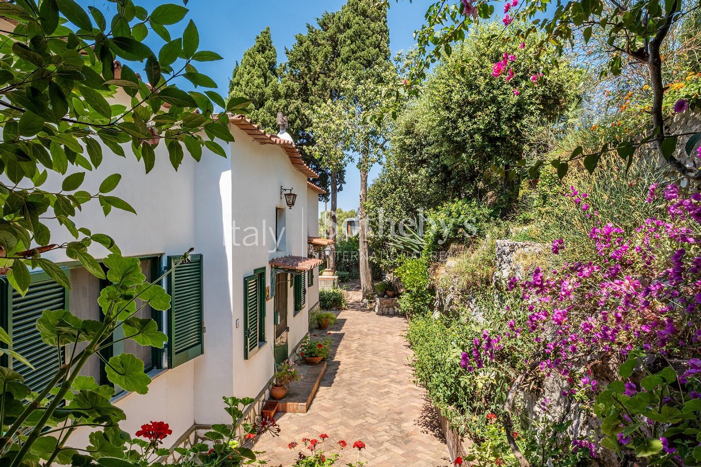Im Herzen von Anacapri, eingebettet in die Ruhe und das Grün der Insel, befindet sich diese historische Residenz aus den 1920er-Jahren, die das Licht und den zeitlosen Charme von Capri in sich vereint. Die Villa war einst ein Treffpunkt für Persönlichkeiten aus der Kunst- und Kulturszene des 20. Jahrhunderts. Im Inneren sind noch heute eine originale Skulptur eines früheren Eigentümers sowie ein kleines, polychromes Fenster aus der Bauzeit erhalten.