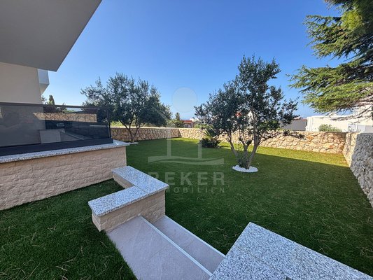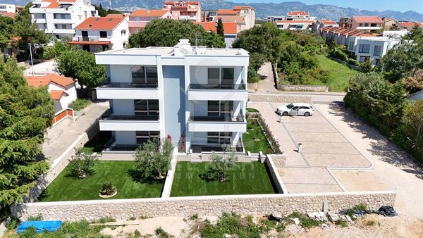 Novalja liegt auf der Insel Pag – an der Westküste, mit Blick auf die offenen Buchten der Adria. Die Stadt ist bekannt, gut erreichbar und bietet das ganze Jahr über eine gewachsene Infrastruktur. Der Standort: ruhig, überwiegend von modernen Wohnhäusern und Ferienimmobilien geprägt. Der Strand ist fußläufig erreichbar, keine 10 Minuten entfernt. Auch der nächste Supermarkt ist bequem in wenigen Minuten erreichbar.