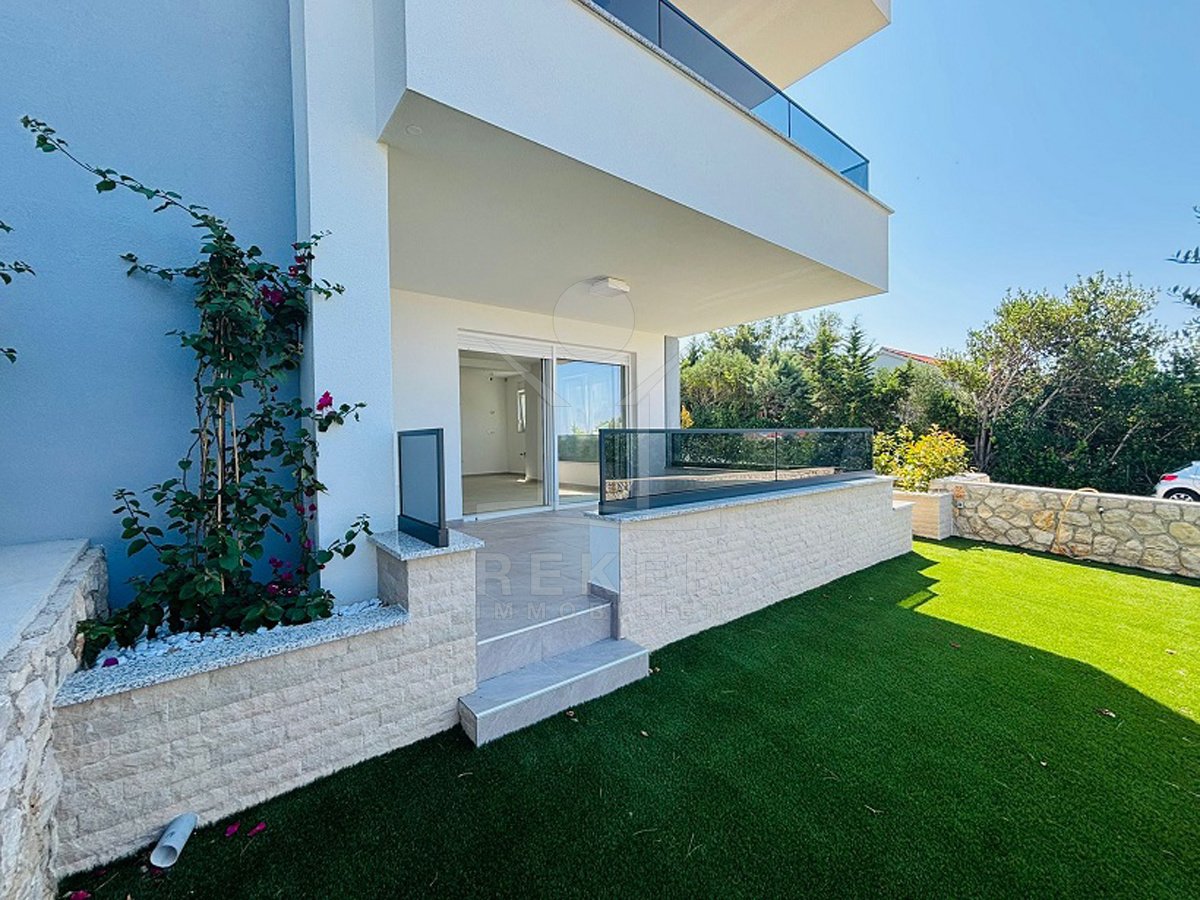Novalja liegt auf der Insel Pag – an der Westküste, mit Blick auf die offenen Buchten der Adria. Die Stadt ist bekannt, gut erreichbar und bietet das ganze Jahr über eine gewachsene Infrastruktur. Der Standort: ruhig, überwiegend von modernen Wohnhäusern und Ferienimmobilien geprägt. Der Strand ist fußläufig erreichbar, keine 10 Minuten entfernt. Auch der nächste Supermarkt ist bequem in wenigen Minuten erreichbar.