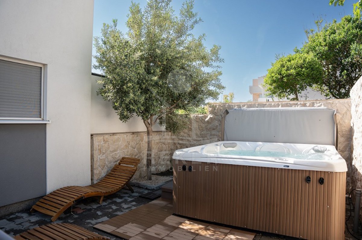 Loggia, Lounge, Luxus: Möblierte Designwohnung mit Garten & Whirlpool in Novalja