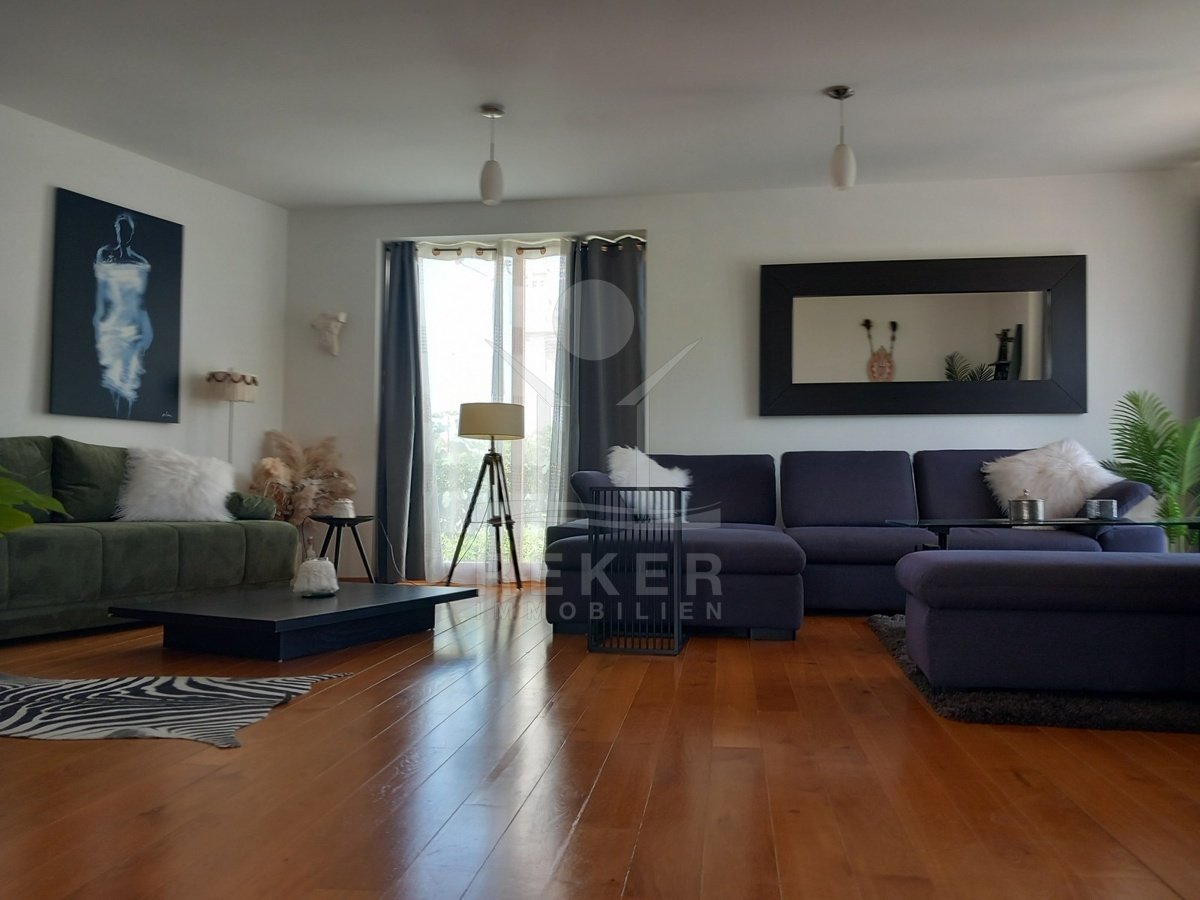Der Außenbereich punktet mit viel Platz und Privatsphäre. Im Mittelpunkt steht der beheizte Keramikpool, eingefasst von einer Natursteinfläche und einem dichten, grünen Zaun mit automatischer Bewässerung. Rundherum: Sonnenliegen, ein gemauerter Kamin, ein schattiger Sitzplatz unter Holzpergola und ein kleines Gartenhaus. Der gesamte Hof ist pflegeleicht angelegt – mit Steinplatten und Kunstrasen.