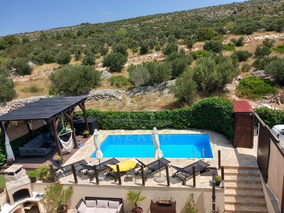 Die Villa befindet sich in einem ruhigen Teil von Brač , nur rund 400 Meter vom Meer entfernt. Das Ortszentrum erreichen Sie zu Fuß in wenigen Minuten. Auch mit dem Auto ist das Haus bequem erreichbar – ein privater Parkplatz gehört dazu. Die Lage