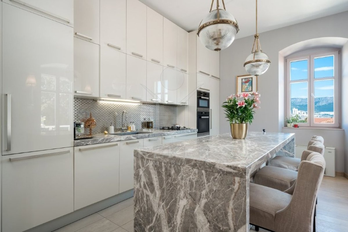 Ein Zuhause mit dem Charme eines Boutique-Hotels: Diese möblierte Designwohnung in einer Steinvilla vereint mediterrane Gelassenheit mit klassischer Eleganz. Morgens auf der Terrasse frühstücken, mittags im Pool entspannen – Split war nie stilvoller.