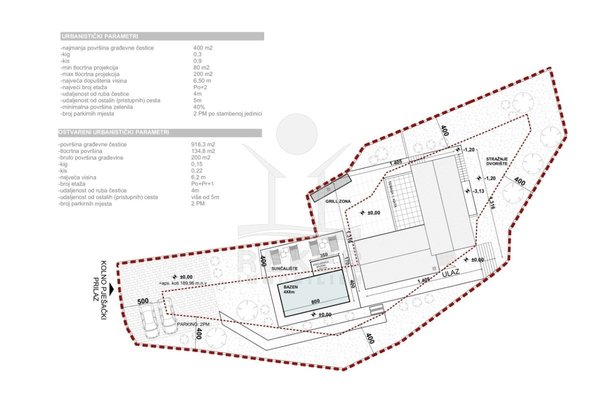 Nähe Vrbnik – ein kleiner Ort, ganz in der Nähe der bekannten Weinstadt auf Krk. Das 916 m² große Grundstück liegt etwa 4 Kilometer vom Meer und vom Zentrum entfernt. Die Zufahrt ist gesichert, die Infrastruktur direkt in der Nähe. Ruhige