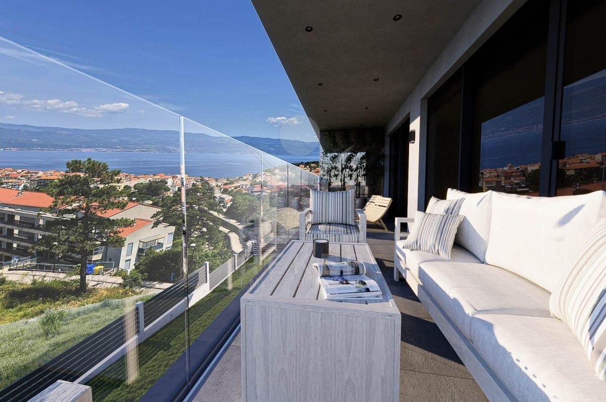 Vrbnik auf der Insel Krk, eine sehr schöne Ecke an der Adria. Die Gegend ist bekannt für ihre Ruhe, grüne Natur und das entspannte Tempo des Alltags. Dieses Neubauprojekt steht etwas oberhalb des Ortskerns in einer sanften Hanglage. Alle Wohnungen