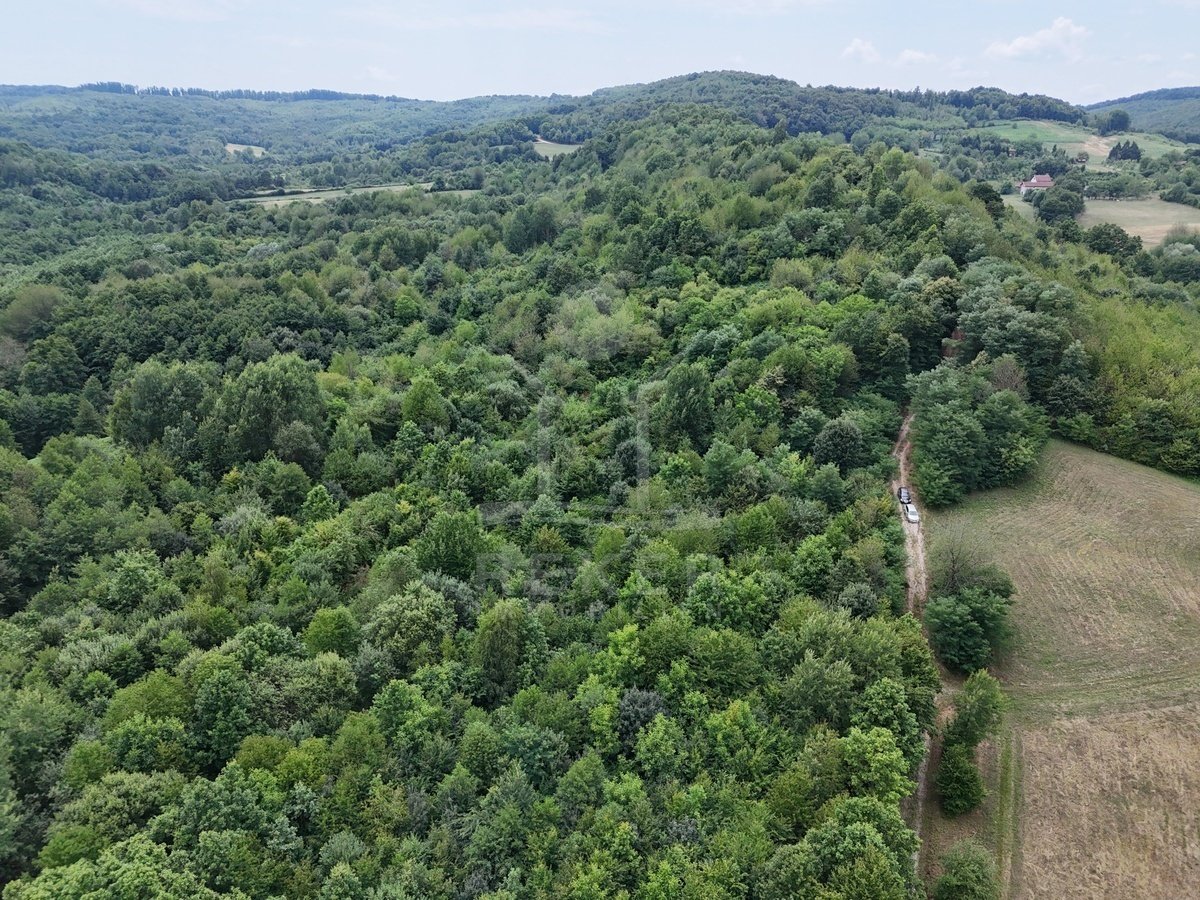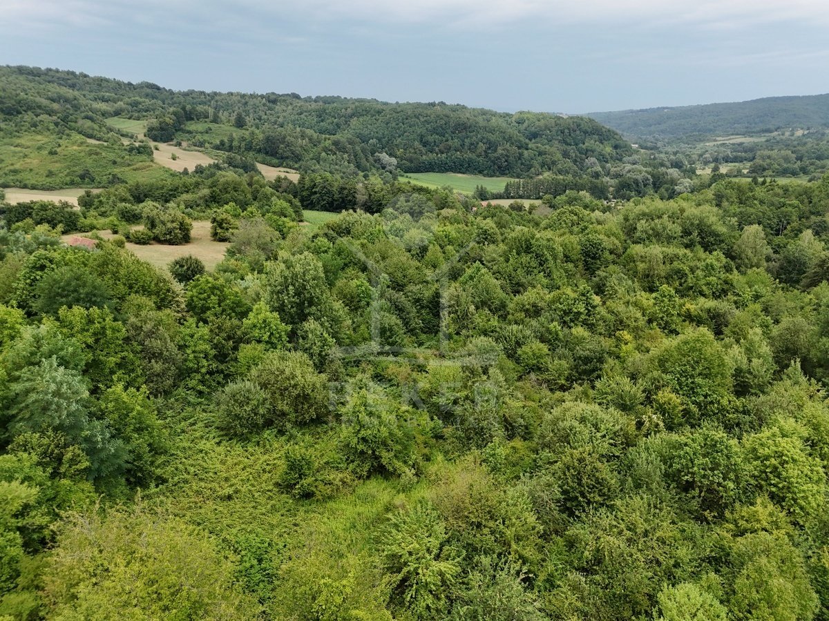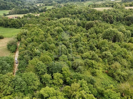 Über 43.000 Quadratmeter Land. Wald, Wiese, absolute Ruhe. Dieses Grundstück in Gornji Sjeničak ist etwas für Menschen, die Platz brauchen und nichts dagegen haben, wenn es rundherum einfach nur grün ist. Ein Schotterweg führt gut erreichbar hinein,