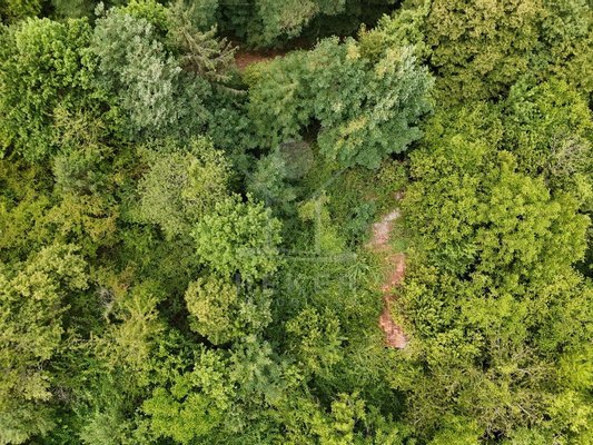 Über 43.000 Quadratmeter Land. Wald, Wiese, absolute Ruhe. Dieses Grundstück in Gornji Sjeničak ist etwas für Menschen, die Platz brauchen und nichts dagegen haben, wenn es rundherum einfach nur grün ist. Ein Schotterweg führt gut erreichbar hinein, 3,5 km bis zur nächsten Asphaltstraße. Auf dem Gelände: Natur pur, ein paar alte Mauerreste und mittendrin ein Stück mit Baurecht – genau 1.209 m². Für ein Haus, ein kleines Projekt, vielleicht ein Rückzugsort.