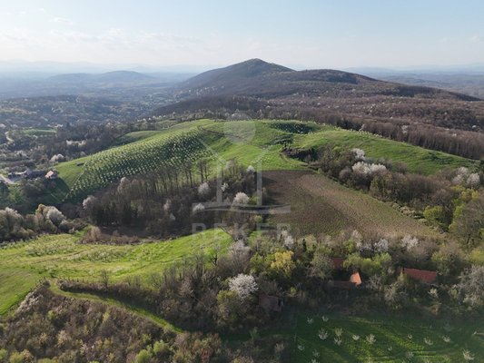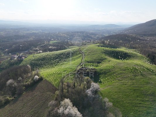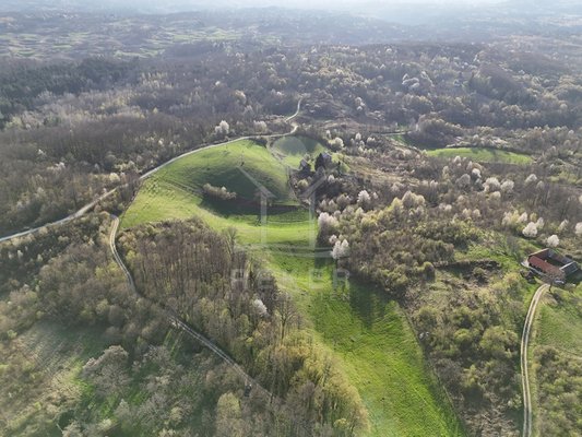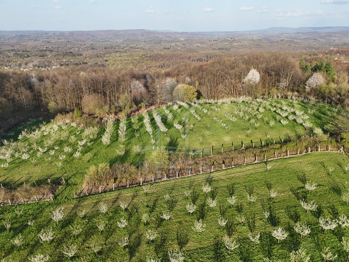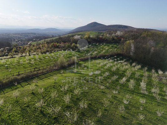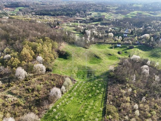 39 Hektar Land, durchzogen von sanften Hügeln, Obstplantagen und Wiesen. Das Grundstück liegt in ruhiger, ländlicher Umgebung und ist komplett erschlossen durch eine asphaltierte Zufahrt. Die Umgebung ist naturbelassen und bietet viel Privatsphäre.