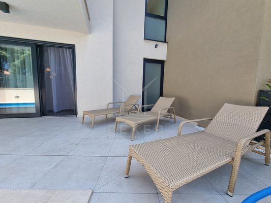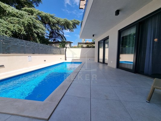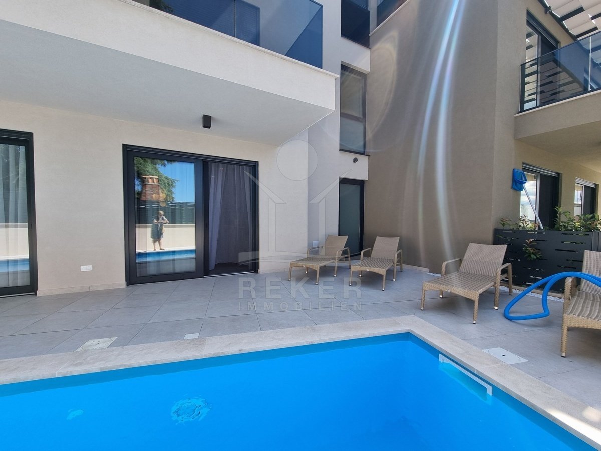 Sonnenbaden im eigenen Garten, erfrischen im Pool, grillen auf der Terrasse – und abends aufs Meer blicken. Diese Wohnung erfüllt mehr als nur praktische Ansprüche. Sie liefert Lebensqualität.