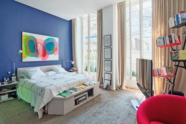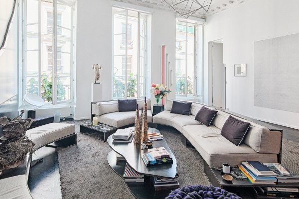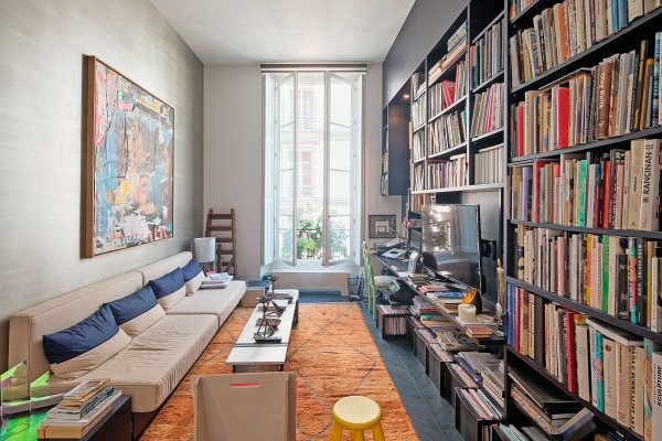 Alleinvertreter. In der elegantesten Straße von St-Germain-des-Prés, auf halbem Weg zwischen dem Jardin du Luxembourg und dem St-Sulpice-Platz, im 1. Stock (U.S. 2.) eines Hôtel particulier aus dem 18. Jahrhundert, zeitgenössischer Stil, 191 m². (2.056 Quadratfuß) Wohnung mit 4 m hohen Decken in allen Räumen und 7 hohen Fenstern zur Rue de Tournon, die einem Kunstsammlerpaar gehört. Großer Salon, Bibliothek, Esszimmer, Küche, 2 oder 3 Schlafzimmer, 2 Bäder (ein 3. möglich). Wein- oder Lagerkeller.