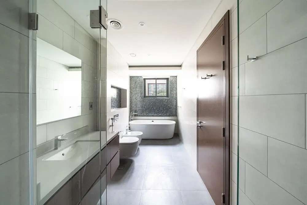 Die Villa verfügt über 4 Schlafzimmer, jedes mit eigenem Badezimmer. Das Tageslicht-Badezimmer umfasst eine Dusche und eine luxuriöse Badewanne. Alle Armaturen stammen von der renommierten Marke Grohe und sorgen für ein elegant gestaltetes Wohnambiente. Zudem gibt es ein Nanny-Zimmer sowie ein Fahrerzimmer, um Ihren Bedürfnissen gerecht zu werden.