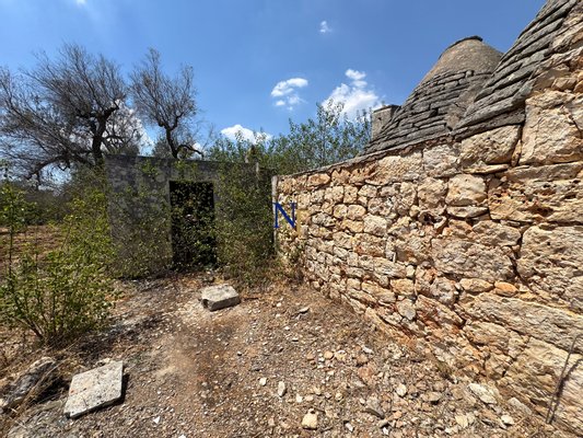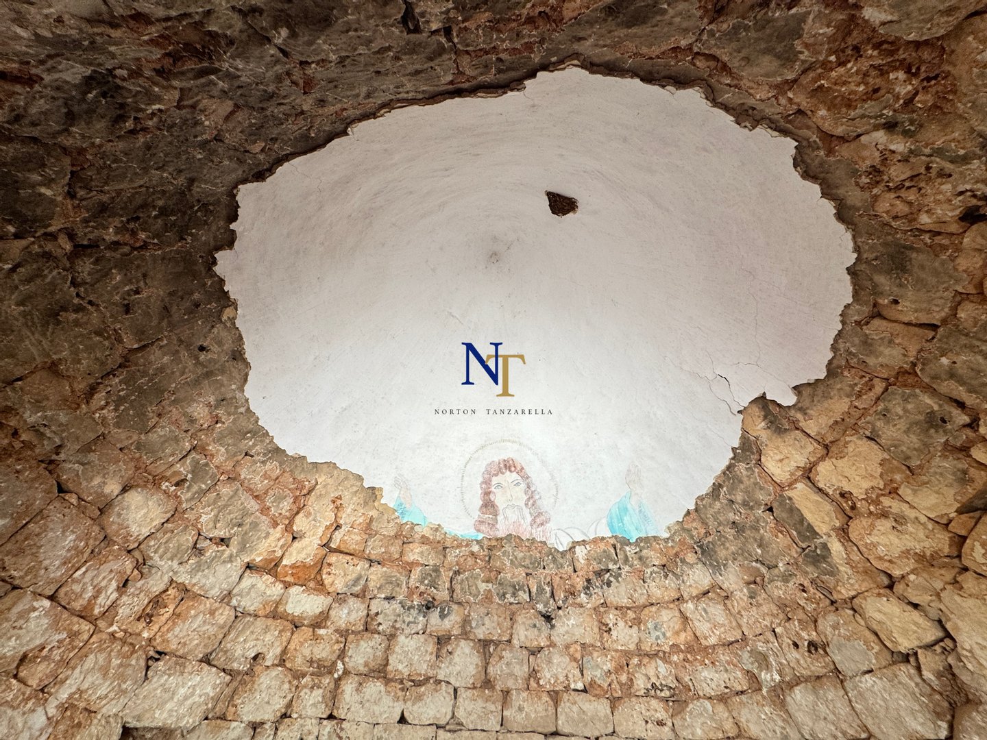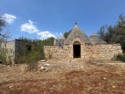 Norton Tanzarella freut sich, exklusiv zwei Trulli-Komplexe zum Verkauf anzubieten, die vollständig restauriert werden müssen. Das Anwesen erstreckt sich über etwa 3 Hektar Land, das mit alten Oliven-, Feigen- und Mandelbäumen geschmückt ist. Es bietet eine Atmosphäre absoluter Ruhe, in perfekter Harmonie mit der authentischsten ländlichen Landschaft Apuliens. Ein idealer Ort für diejenigen, die einen Rückzugsort auf dem Land suchen, privat, aber leicht erreichbar von den Hauptorten der Region. Die Trulli bewahren ihren ursprünglichen Charme und bieten erhebliches Restaurierungspotenzial. Es besteht auch die Möglichkeit, eine neue, unabhängige Villa von etwa 100 Quadratmetern zu bauen, die die historische Architektur in ein modernes Wohnprojekt integriert, das die Umgebung respektiert.Auf dem Grundstück befindet sich für jeden Trullo eine Zisterne zur Regenwassersammlung.Dies ist eine seltene Gelegenheit, eine private Residenz oder ein Gastgewerbeprojekt inmitten der Natur zu entwickeln, während die Authentizität und der zeitlose Charme der apulischen Landschaft gewahrt bleiben.
