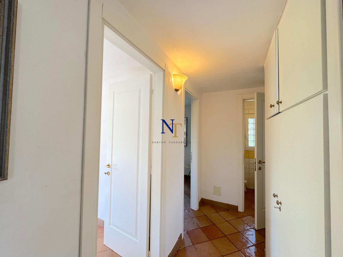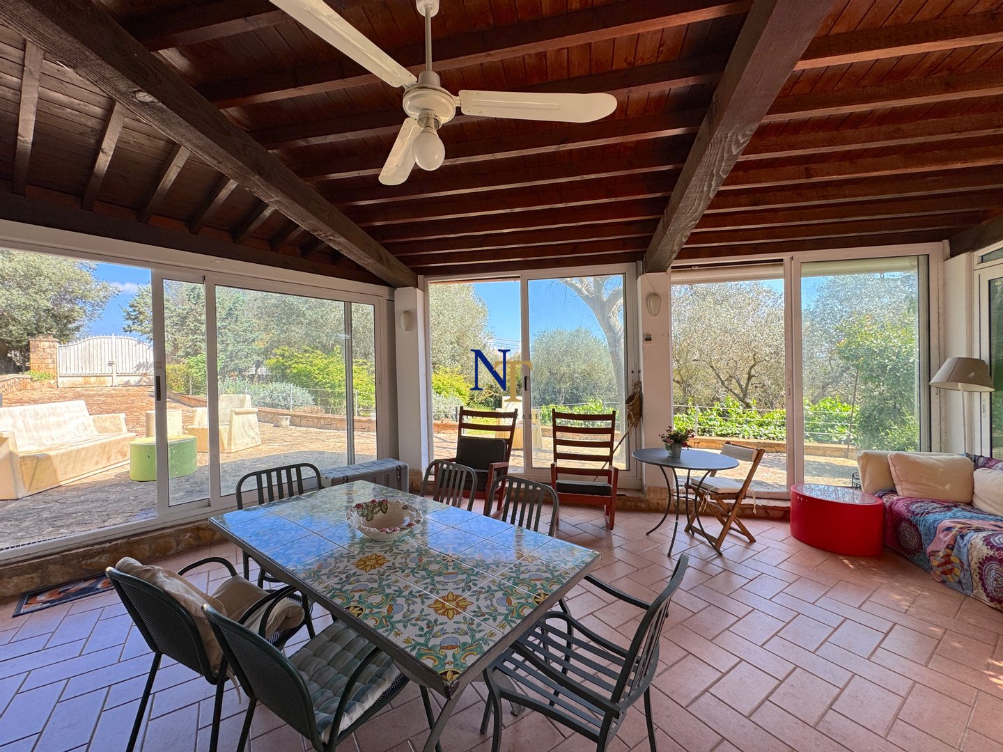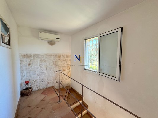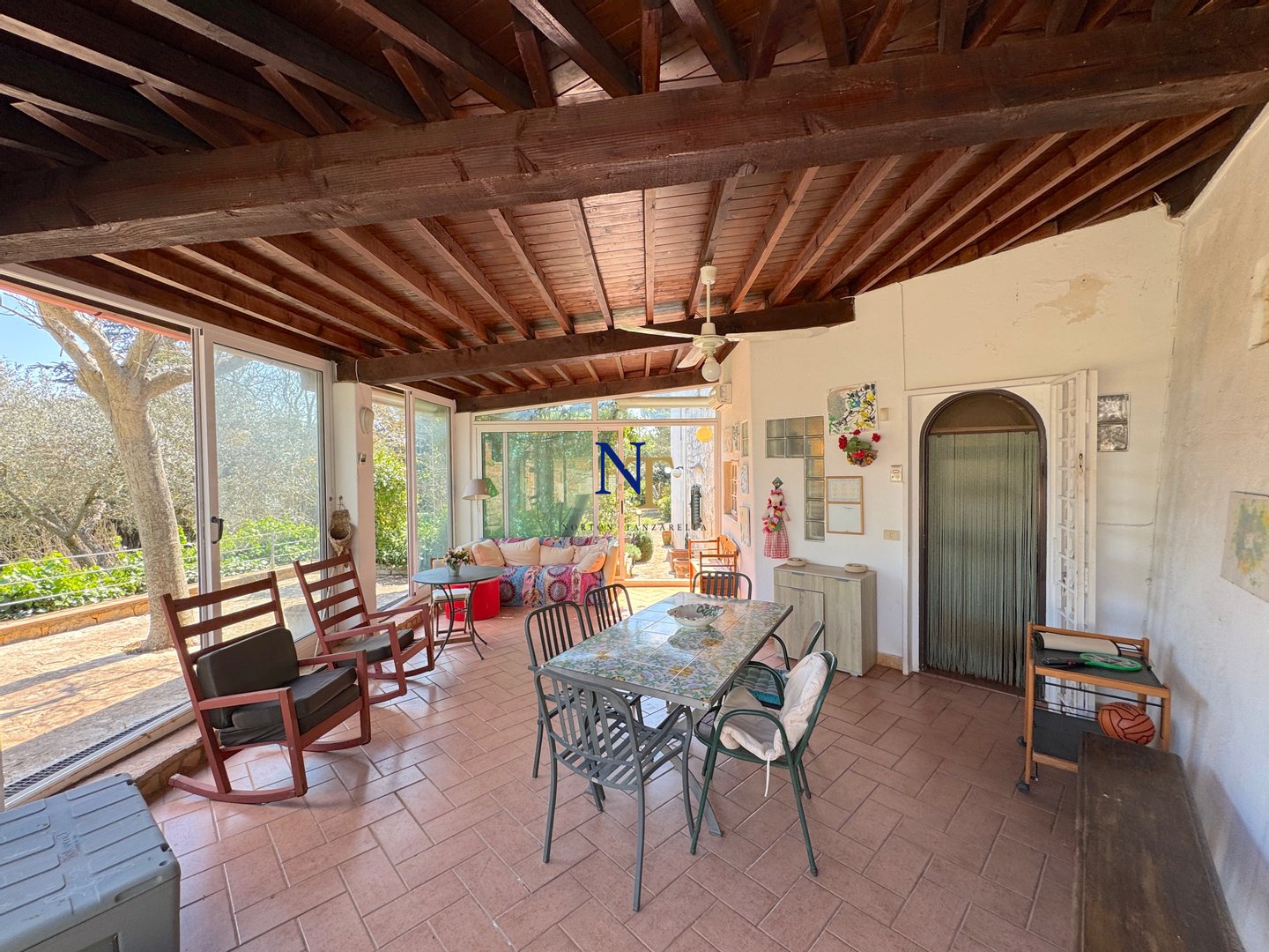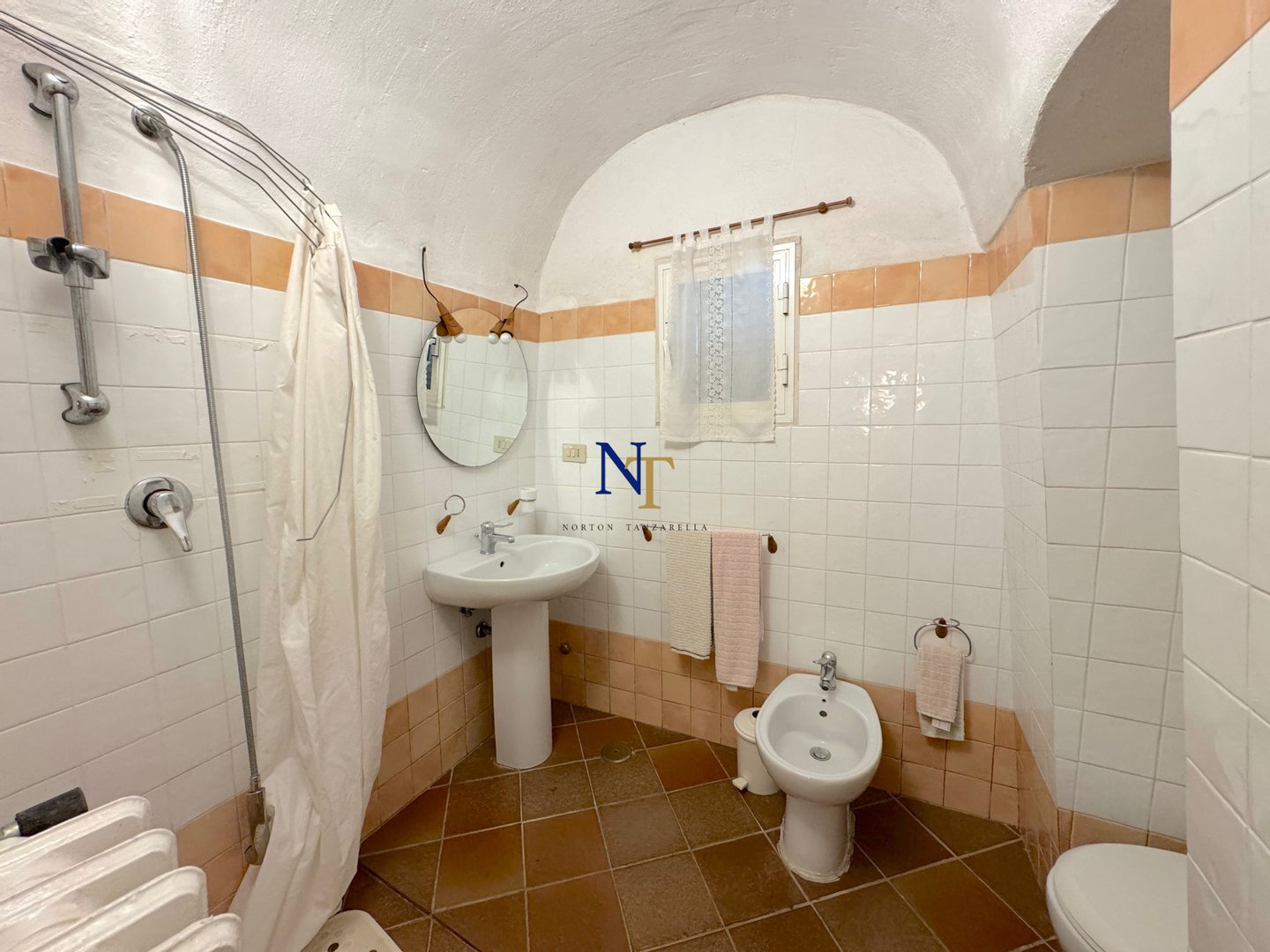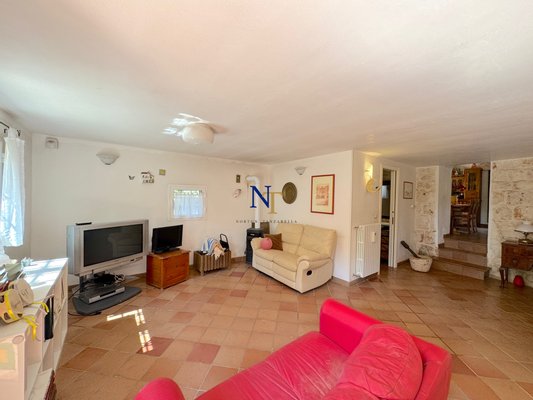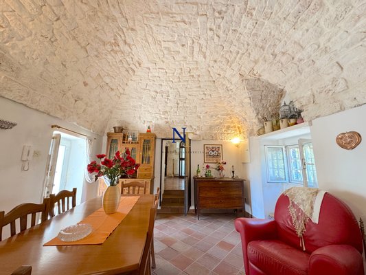 Der Trullo, der voller Charakter und Authentizität strahlt, befindet sich neben der Hauptvilla und ist über eine reizende Veranda mit einer hölzernen Pergola zugänglich – der perfekte Ort, um im Freien zu entspannen. Im Inneren befinden sich eine gemütliche Nische, ein kleines Wohnzimmer, ein Badezimmer mit Dusche und ein praktischer Abstellraum. Die Küche verbindet diesen Bereich mit einem zweiten Steinkegel, der durch einen alten Steinkamin aufgewertet wird – ein idealer Ort zum Lesen oder Entspannen, auch in den Wintermonaten. Das Erdgeschoss der Villa, direkt mit dem Trullo verbunden, verfügt über einen hellen und großzügigen Wohnbereich, ein zusätzliches Badezimmer und eine Treppe, die zum Schlafbereich führt. Im ersten Stock befinden sich zwei Doppelzimmer, eines davon mit einem kleinen Balkon mit Blick auf den Garten, ein Einzelzimmer und ein weiteres Badezimmer. Die Immobilie wird durch zwei praktische Zufahrten, einen großen Außenhof, ideal für das Leben im Freien, einen charmanten Pinienwald, einen Holzbackofen und einen nützlichen Abstellraum komplettiert.