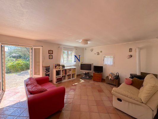 Die Immobilie umfasst zusätzlich Heizkörper, die mit einem Gastank betrieben werden, zwei Klimaanlagen, ein Holzofen im Wohnzimmer und zwei Wasserzisternen für die Wasserversorgung. Das gesamte Grundstück, etwa 6.000 Quadratmeter, ist vollständig