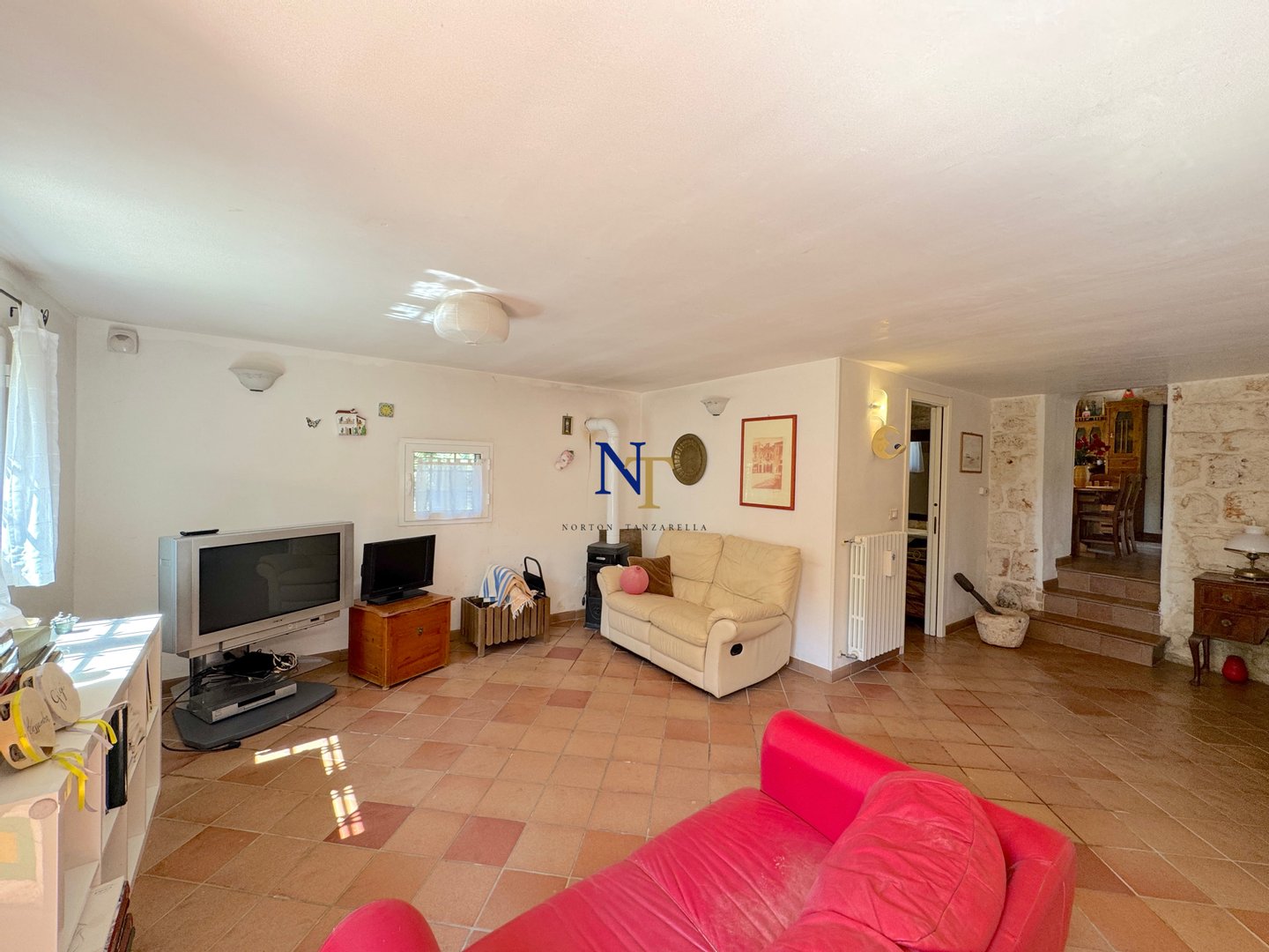 Die Immobilie umfasst zusätzlich Heizkörper, die mit einem Gastank betrieben werden, zwei Klimaanlagen, ein Holzofen im Wohnzimmer und zwei Wasserzisternen für die Wasserversorgung. Das gesamte Grundstück, etwa 6.000 Quadratmeter, ist vollständig eingezäunt und von den typischen apulischen Trockensteinmauern umgeben. Alte Olivenbäume, Obstbäume und ein üppiger Pinienhain schaffen eine Atmosphäre absoluter Ruhe und Privatsphäre. Eine ideale Lösung für diejenigen, die ein charmantes Zuhause im Herzen der apulischen Landschaft suchen.