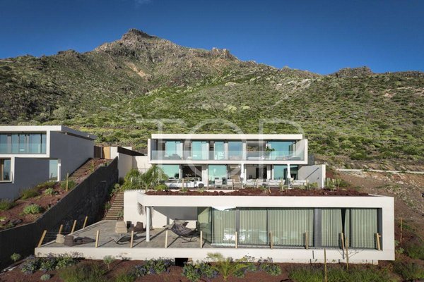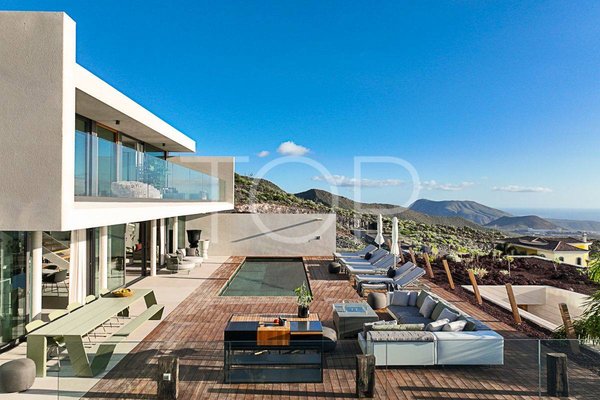 WOHNEN ZWISCHEN MEER UND BERGEN - Top Immo präsentiert diese Villa mit moderner und avantgardistischer Architektur, eingebettet in eine erstaunliche Naturlandschaft mit Panoramablick auf die gesamte Südküste der Insel und die Berge, was sie zu einer Oase der Privatsphäre und Ruhe macht. Es befindet sich in einer absolut einzigartigen Lage im Süden von Teneriffa, im höchsten Teil des atemberaubenden Gebiets Roque del Conde.