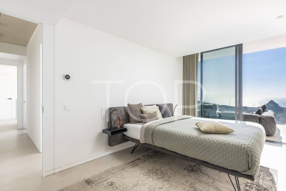 Die Villa mit über 285m2 auf einem Grundstück von 1.300m2 verfügt über 4 Schlafzimmer und 3 Badezimmer. Das 75 m2 große Wohn- und Esszimmer bietet einen Panoramablick, der von der Küste von Los Cristianos und Playa de las Américas bis zum Ende von Costa Adeje reicht. Beide verschmelzen zu einem einzigen Raum der Bequemlichkeit und des Komforts, der mit organischen Linien und natürlichen Materialien gestaltet ist. Darüber hinaus verfügt die Villa über einen privaten Pool und schöne Gärten, die sich in die umliegende Natur einfügen. Sein modernes Design vereint den Stil Südeuropas mit den Qualitätsstandards Nordeuropas.