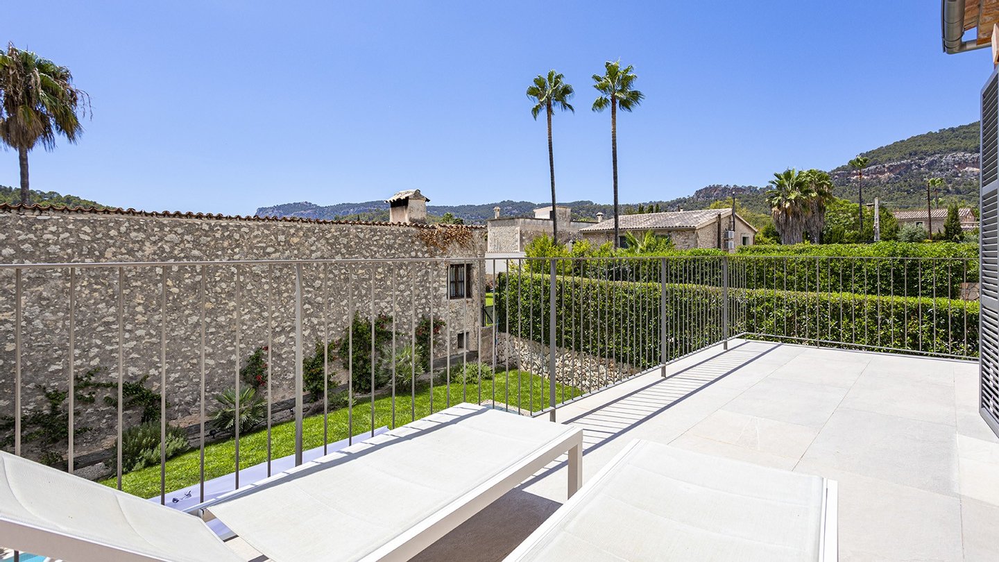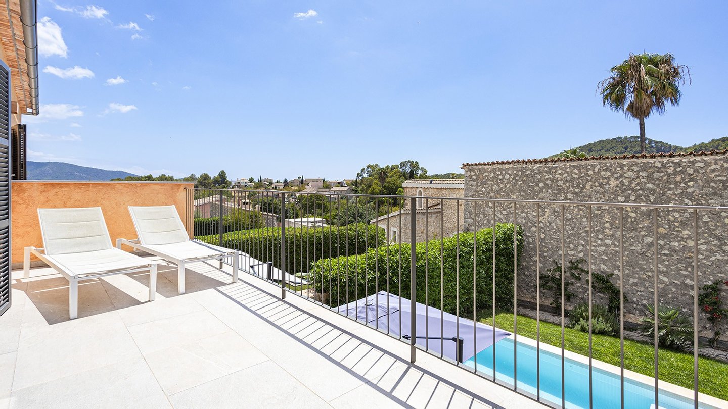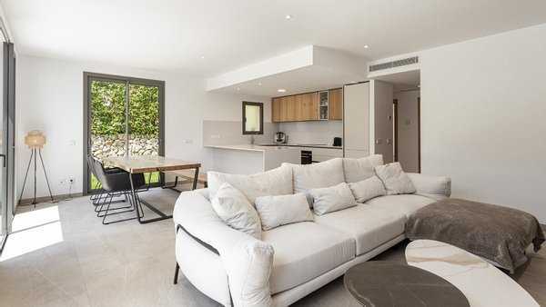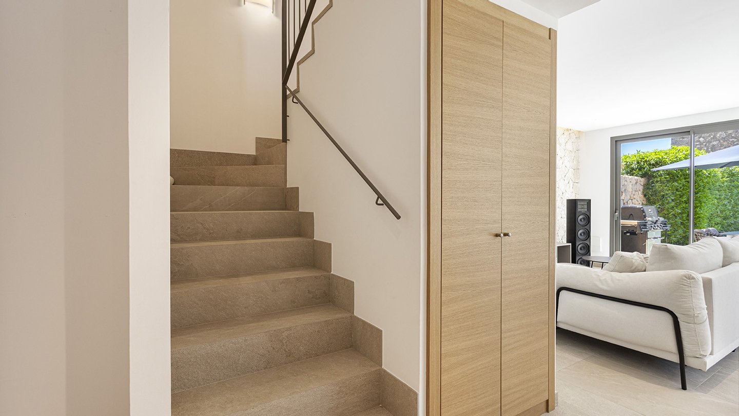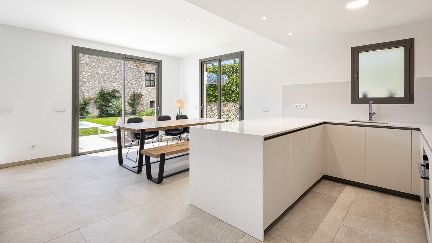 Inmitten des malerischen Dorfes Es Capdellà erwartet Sie dieses stilvolle ,im Jahr 2024 erbaute Doppelhaushälfte, das mediterrane Architektur mit zeitgemäßem Wohnambiente gekonnt miteinander verbindet. Auf 135?m² Wohnfläche und einem 243?m² großen Grundstück genießen Sie Ruhe, Komfort und mallorquinisches Flair.Die Innenräume des Hauses präsentieren sich modern und hochwertig ausgestattet. Drei Schlafzimmer und zwei stilvolle Badezimmer bieten komfortables Wohnen für die ganze Familie. Eine offene Einbauküche mit Elektrogeräten fügt sich nahtlos in den Wohnbereich ein, während Hauswirtschafts- und Abstellraum für Ordnung im Alltag sorgen. Für ganzjährig angenehmes Raumklima sorgen eine Fußbodenheizung mit Wärmepumpe sowie eine Klimaanlage . Die Möblierung ist auf Wunsch optional erhältlich. Hochwertige Fliesenböden, isolierende Aluminiumfenster mit Doppelverglasung sowie passende Blendläden zeugen von einer sorgfältigen Materialwahl und einem stimmigen Gesamtkonzept. Die Immobilie ist mit zeitgemäßer Haustechnik ausgestattet: Ein Glasfaseranschluss ermöglicht eine schnelle Internetverbindung, ergänzt durch SAT-TV und einen klassischen Telefonanschluss.Eine integrierte Trinkwasserfilteranlage bietet zusätzlichen Komfort im Alltag. Ein echtes Highlight der Immobilie ist der großzügige Außenbereich: Der ca. 175?m² große, liebevoll angelegte Garten lädt zum Entspannen und Genießen ein. Ob sonnige Nachmittage am privaten Salzwasserpool oder gesellige Abende im integrierten BBQ-Bereich - hier entstehen unvergessliche Momente unter freiem Himmel. Die gepflegte Außenfläche bietet viel Platz für Familie, Freunde und mediterranes Lebensgefühl pur. Parkmöglichkeiten sind ebenfalls vorhanden. Es stehen Ihnen 2 Pkw Stellplätze zur Verfügung,welche durch ein elektrisches Zufahrtstor gesichert sind.