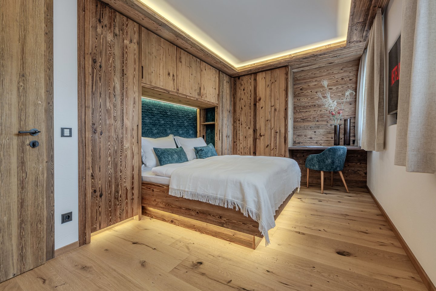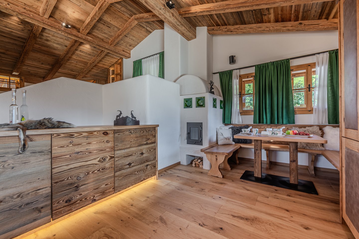 Traditionsreiches Bauhandwerk und nachhaltige Werkstoffe schaffen ein unvergleichliches Wohngefühl. Stress und Hektik erscheinen hier oben, inmitten der Berge, weit entfernt. In althergebrachter Handarbeit werden landestypische Materialien wie Altholz, Naturstein und Eisen zu individuellem Kunsthandwerk veredelt. Die Wirkung ist unvergleichlich.
