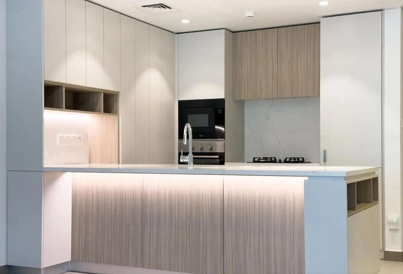 Willkommen in Ihrer neuen Traumwohnung in Kensington Waters Sobha Hartland! Diese stilvolle 2-Zimmer Wohnung ist perfekt für Singles, Paare und Kapitalanleger, die luxuriöses Wohnen in einer exklusiven Lage suchen. Die moderne Einbauküche lädt zum
