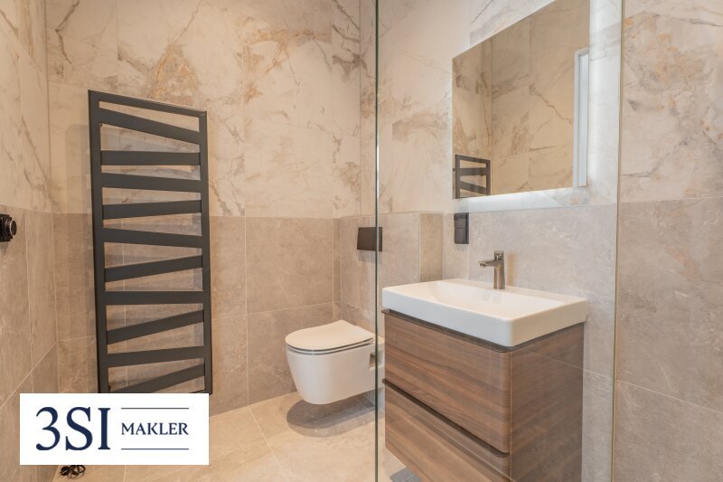 - Hofseitiges Schlafzimmer (ca. 14 m²) mit en suite Badezimmer inkl. Walk-In-Dusche, WC und Doppelwaschtisch