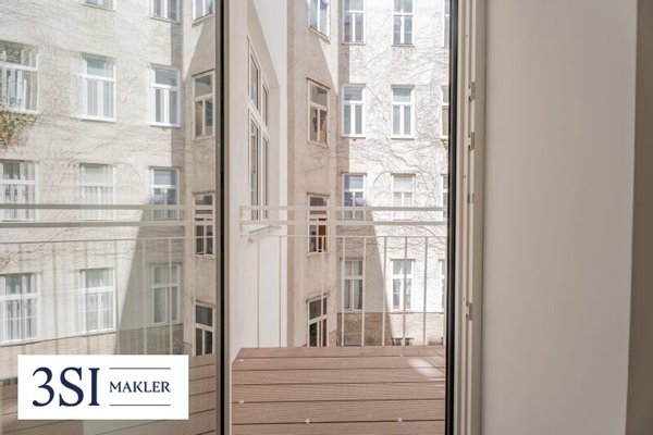 - Loggia mit Blick in den begrünten Innenhof – ein ruhiger Ort zum Entspannen
