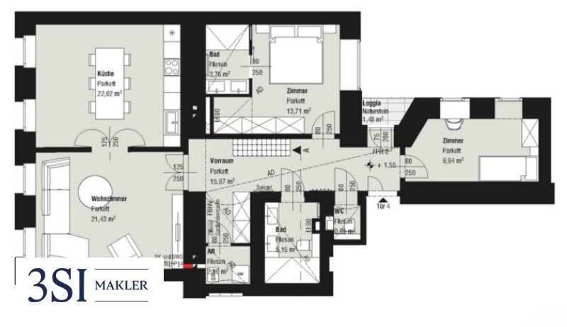 Diese ansprechende 3-Zimmer-Erstbezugswohnung mit einer Wohnfläche von ca. 95 m² überzeugt durch ihre durchdachte Raumaufteilung und hochwertige Ausstattung. Zusätzlich stehen Ihnen eine großzügige Terrasse mit ca. 25 m², eine Loggia mit rund 1,5 m² sowie ein exklusiv zugeordneter, etwa 25 m² großer privater Hofbereich zur Verfügung. Die Wohnung liegt im Erdgeschoß und ist sowohl straßen- als auch hofseitig ausgerichtet – ideal für lichtdurchflutete Räume und angenehme Privatsphäre.