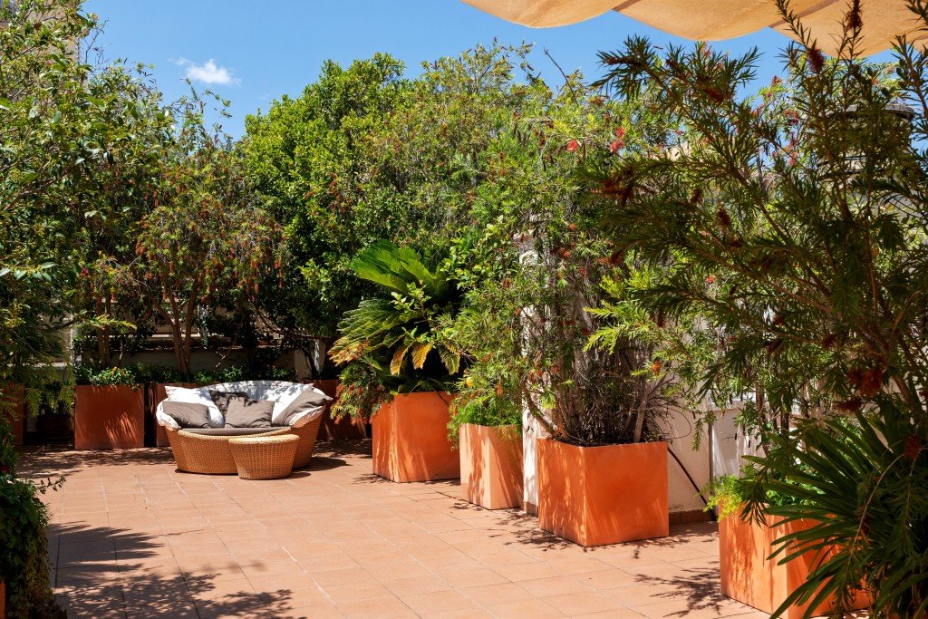 Ein Highlight ist die ebenfalls rund 100 m² große private Dachterrasse. Von hier aus genießen Sie einen atemberaubenden 360-Grad-Blick über die Skyline von Palma, die Bucht von Palma, den Hafen und die berühmte Kathedrale La Seu. Dieser exklusive Außenbereich bietet eine seltene Gelegenheit, die Schönheit der Stadt und des Meeres aus einer erhöhten und privaten Perspektive zu genießen.