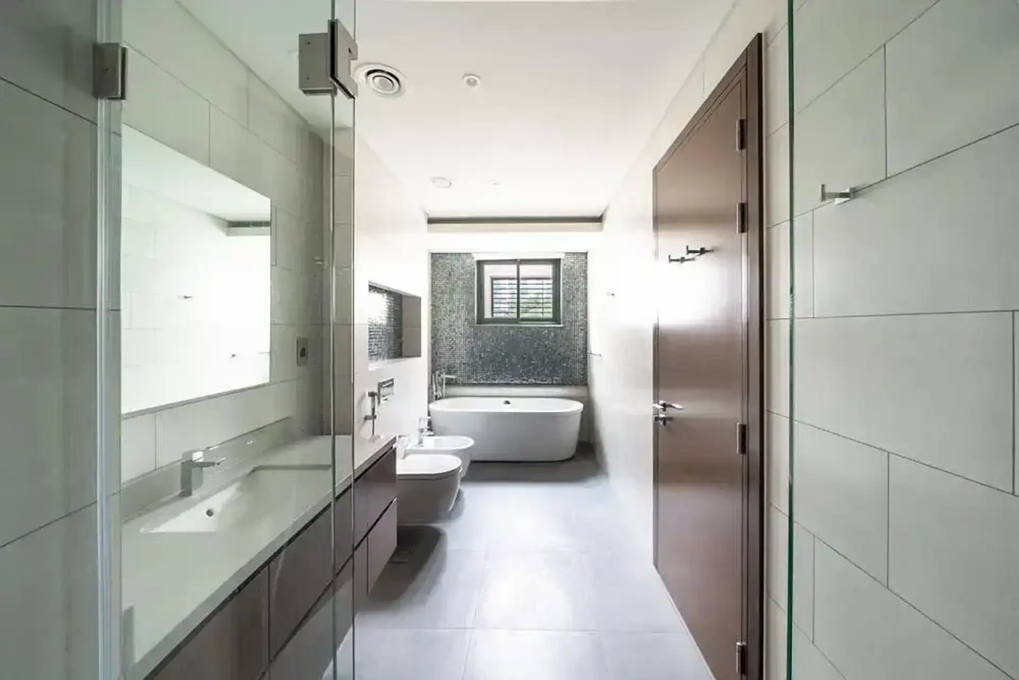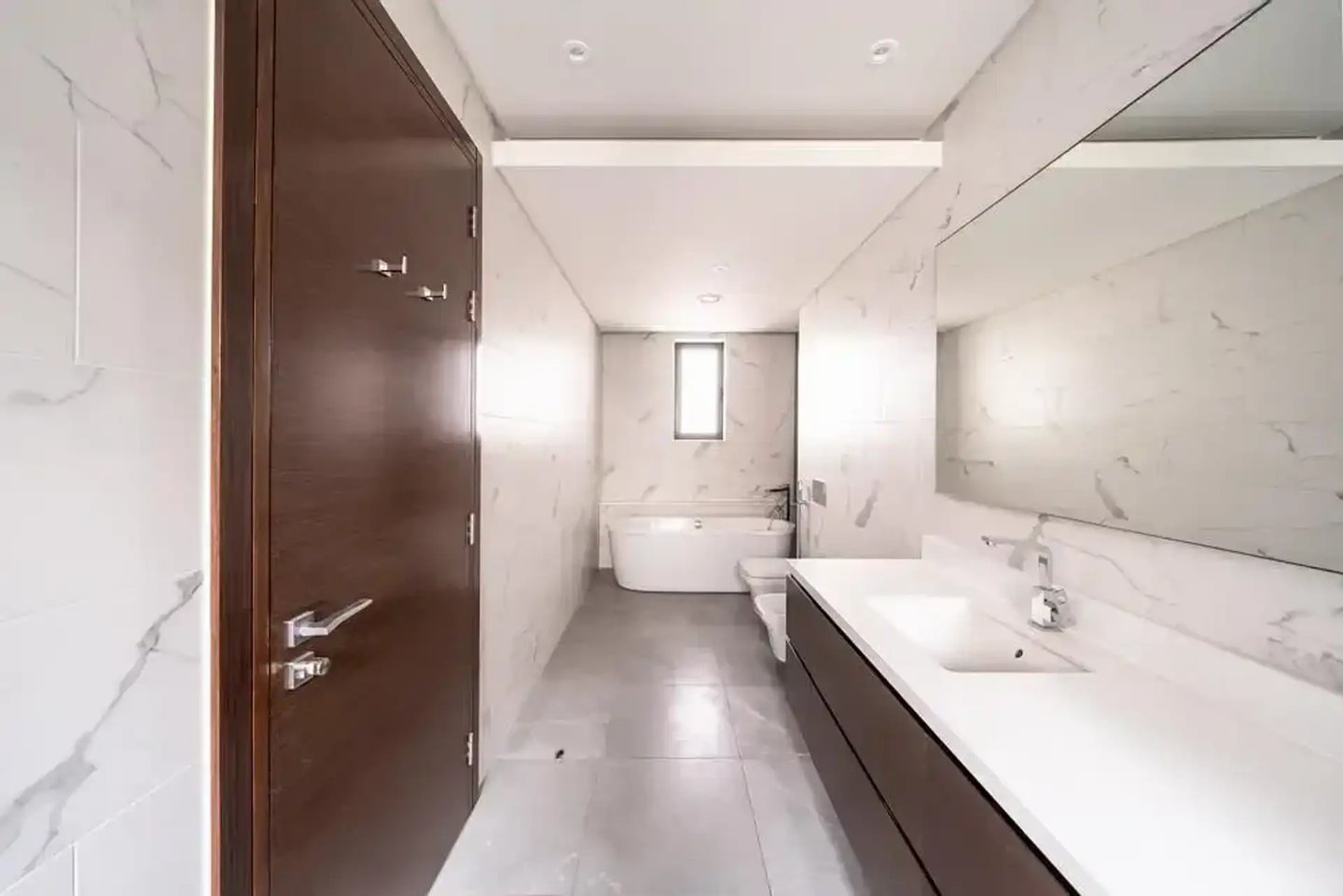 Die Villa verfügt über 4 Schlafzimmer, jedes mit eigenem Badezimmer. Das Tageslicht-Badezimmer umfasst eine Dusche und eine luxuriöse Badewanne. Alle Armaturen stammen von der renommierten Marke Grohe und sorgen für ein elegant gestaltetes Wohnambiente. Zudem gibt es ein Nanny-Zimmer sowie ein Fahrerzimmer, um Ihren Bedürfnissen gerecht zu werden.