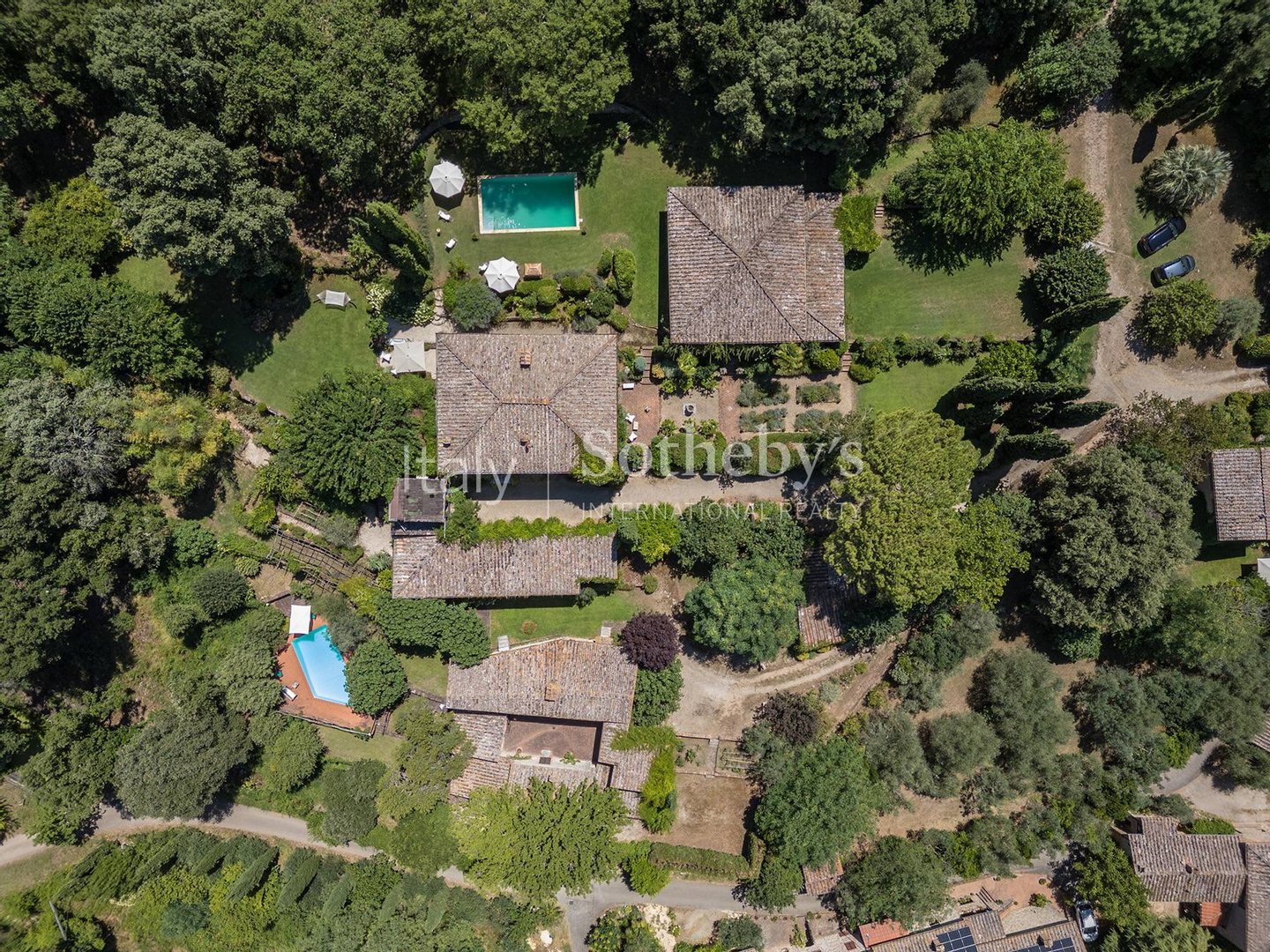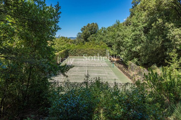 Das Anwesen erstreckt sich über etwa 21 Hektar Land und umfasst eine wahrscheinlich aus dem 19. Jahrhundert stammende Hauptvilla mit Swimmingpool, ein großes Bauernhaus, das in zwei Wohneinheiten mit Innenhof und Pool unterteilt ist, ein Haus für den Hausmeister, einen alten Backofen, eine historische Scheune, die heute als Lager genutzt wird, aber leicht in einen Gemeinschafts- oder Freizeitbereich umgewandelt werden kann, ein weiteres unabhängiges Lagerhaus gegenüber der Villa - ideal als Freizeitbereich - und schließlich einen Tennisplatz, der sich in einem kühlen und abgeschiedenen Bereich neben dem Wald befindet. Die Zufahrtsstraße ist bis zum Eingang vollständig asphaltiert, was das Anwesen auch mit Sportwagen leicht erreichbar macht. Nach dem Tor betritt man den Garten der Villa, einen romantisch bezaubernden und intimen Ort, der zu den Hauptbereichen führt.